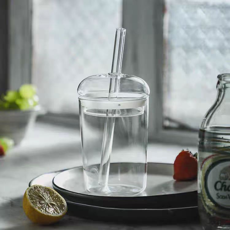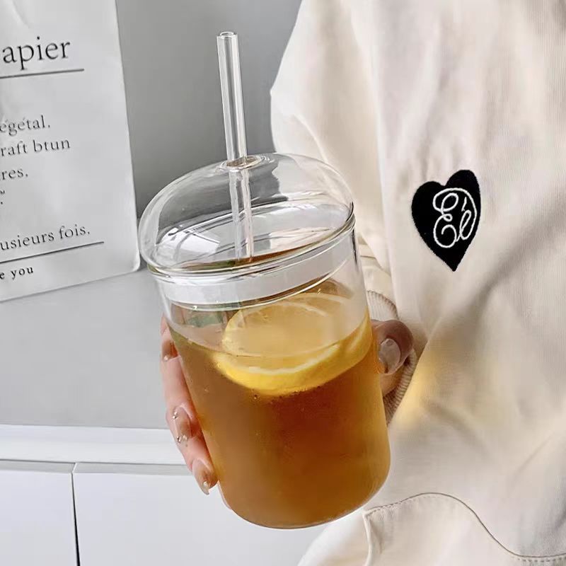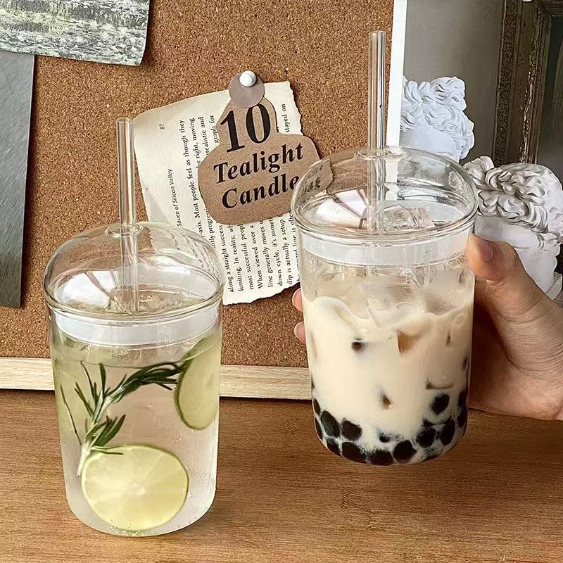JuiceIce Drink Cup, Milk Tea Cup, High Borosilicate Glass Cup, Household Coffee Cup, Stylish Drinking Cup With Lid And Straw