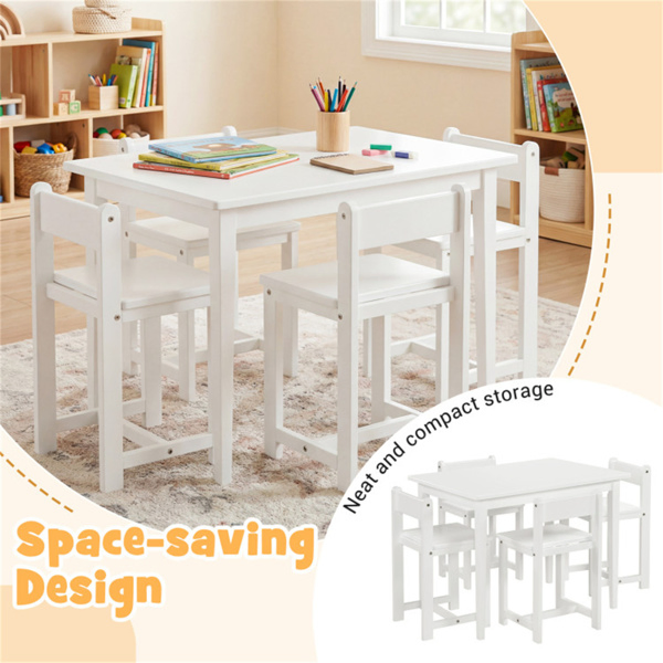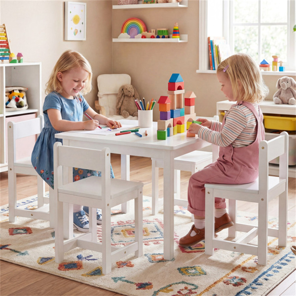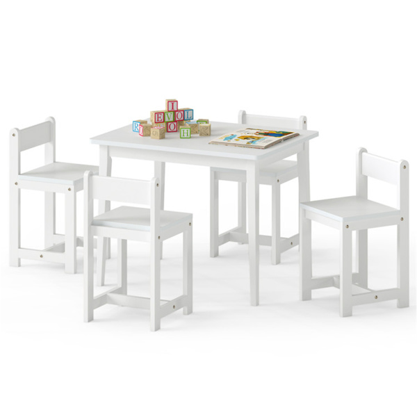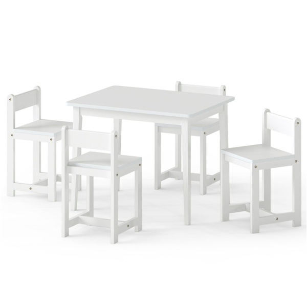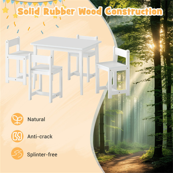Kids Wooden Table And Chairs Set (1 Table + 4 Chairs), Rubber Wood Toddler Activity Set (White)