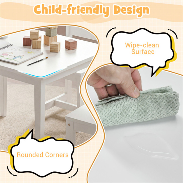 • Worry-free Maintenance: The splinter-free, smooth and wipe-clean surfaces make it easy to keep the table and chairs free from spills and stains. This practical feature ensures your child's play area stays hygienic and inviting at all times.
