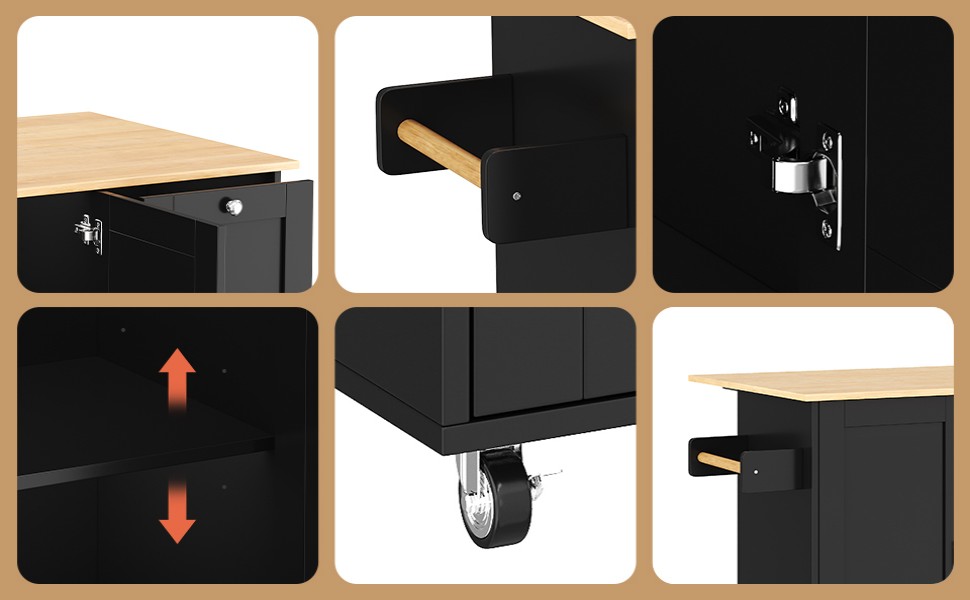 - Multi-purpose scenarios: Whether used as a kitchen island, additional dining room workstation, or mobile storage cart, this utility cart offers versatile support. With its solid structure and large capacity, it’s suitable for small kitchens or as extra workspace in larger homes.