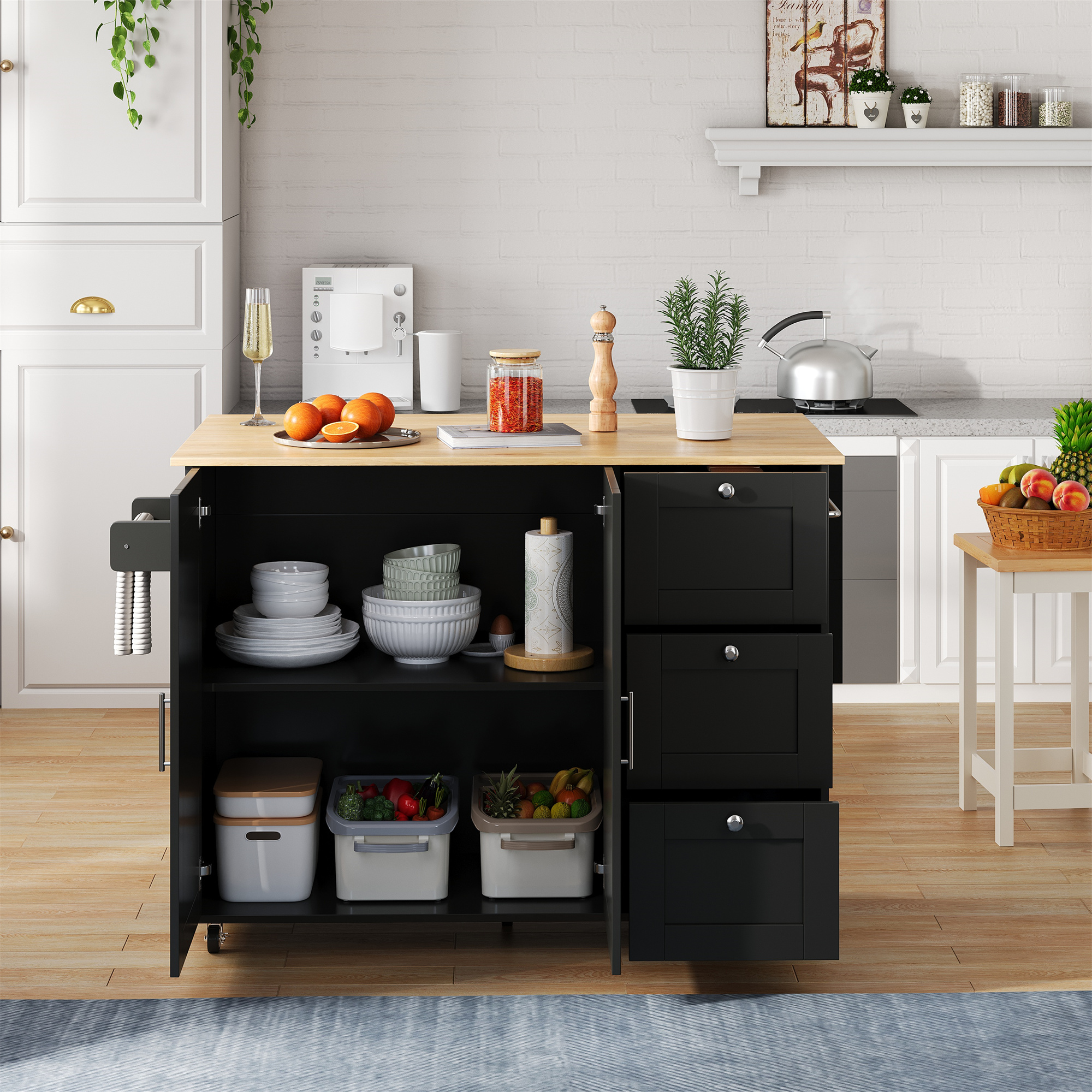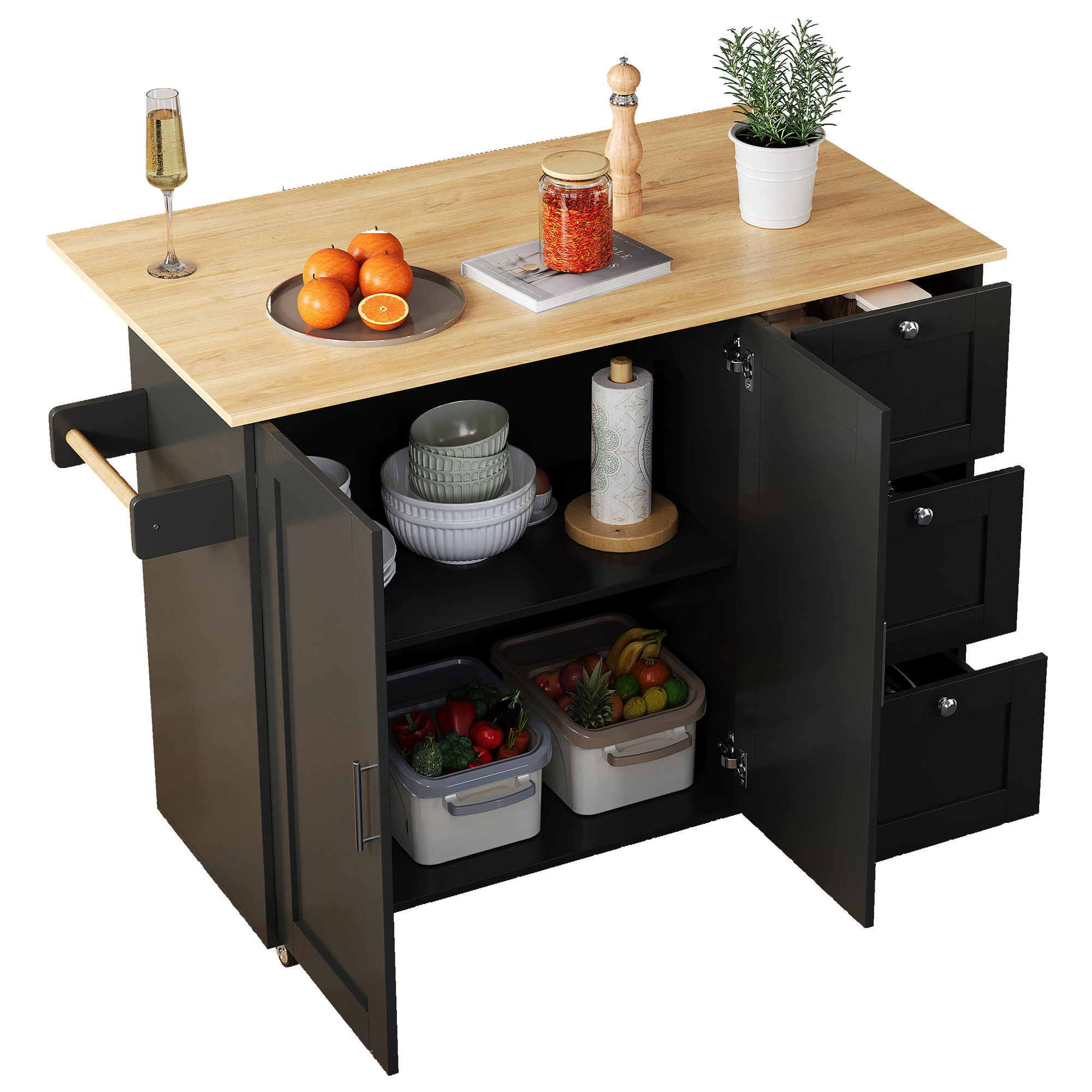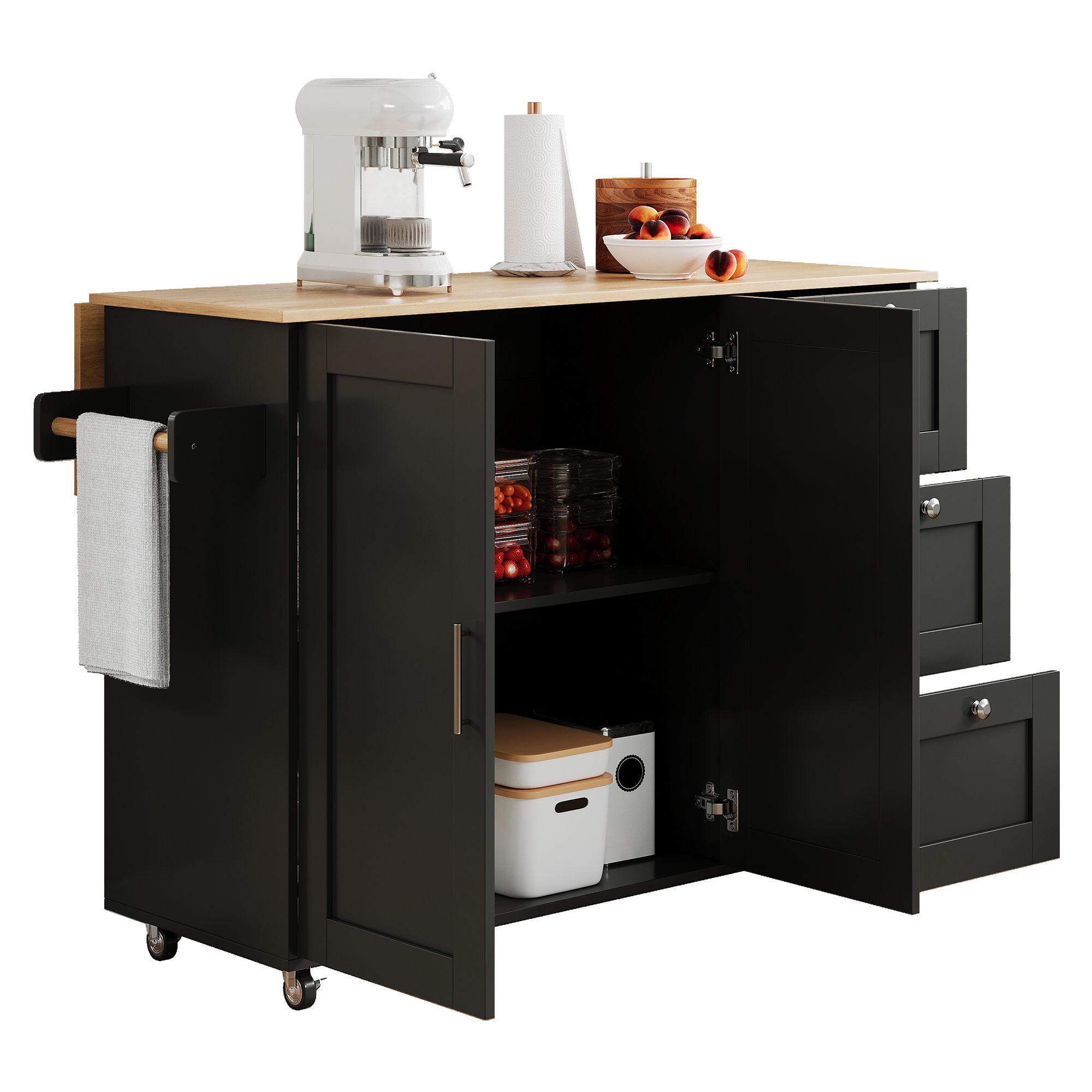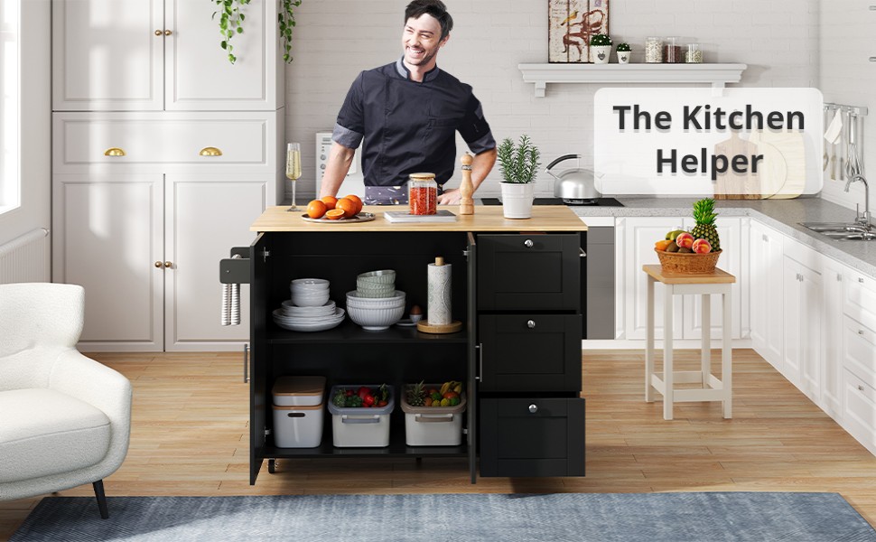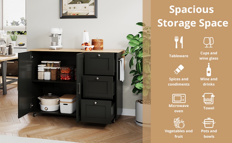 SpecificationProduct InformationProduct Type :Combo ItemProduct Name:Kitchen Island on Wheels, Rolling Storage Trolley with Foldable Tabletop, 3 Drawers, 2 Doors, Lockable Swivel Wheels, Towel Rack –...