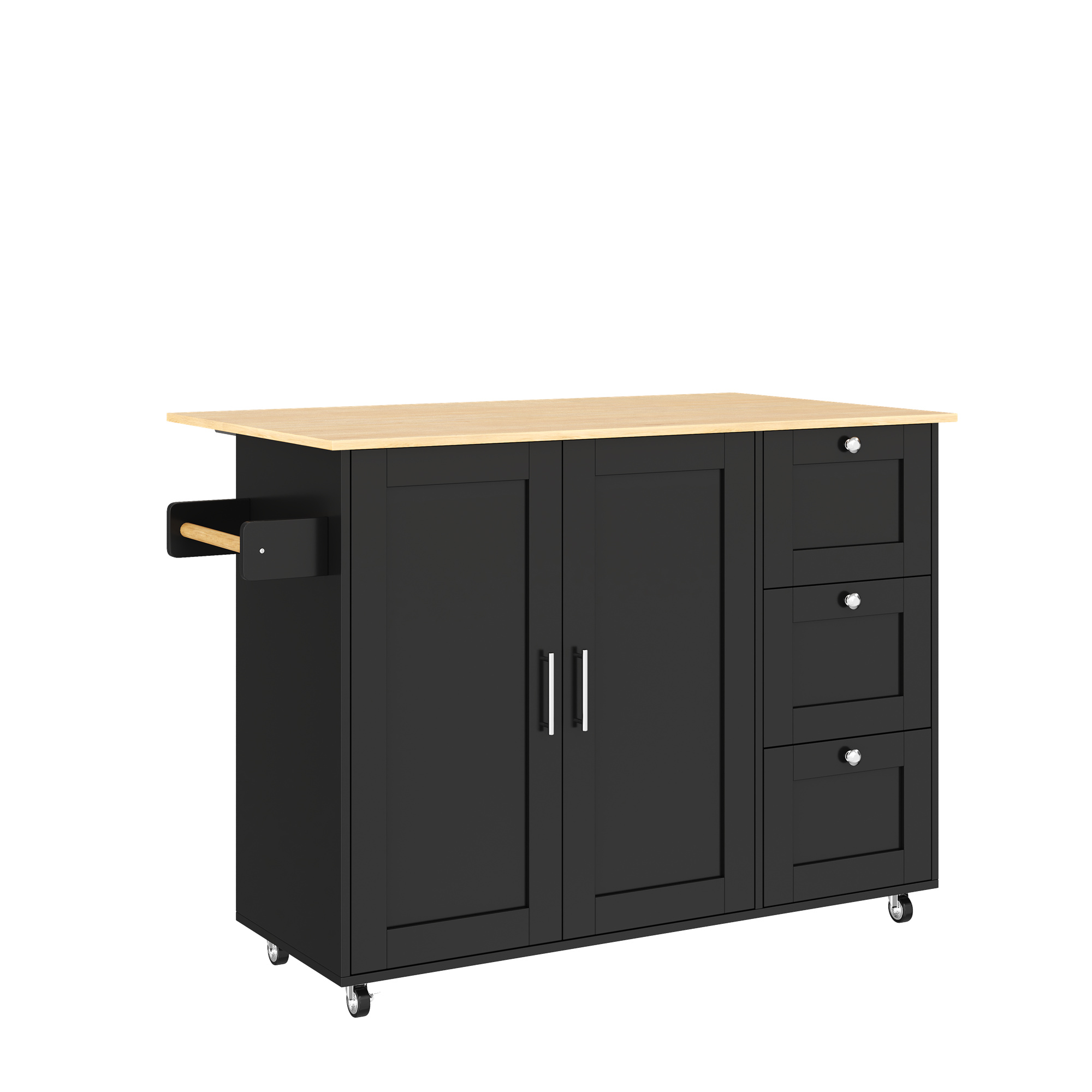 Product Name:Kitchen Island on Wheels, Rolling Storage Trolley with Foldable Tabletop, 3 Drawers, 2 Doors, Lockable Swivel Wheels, Towel Rack – Versatile for Dining Room & Living Room, 135*44(70)*90cm