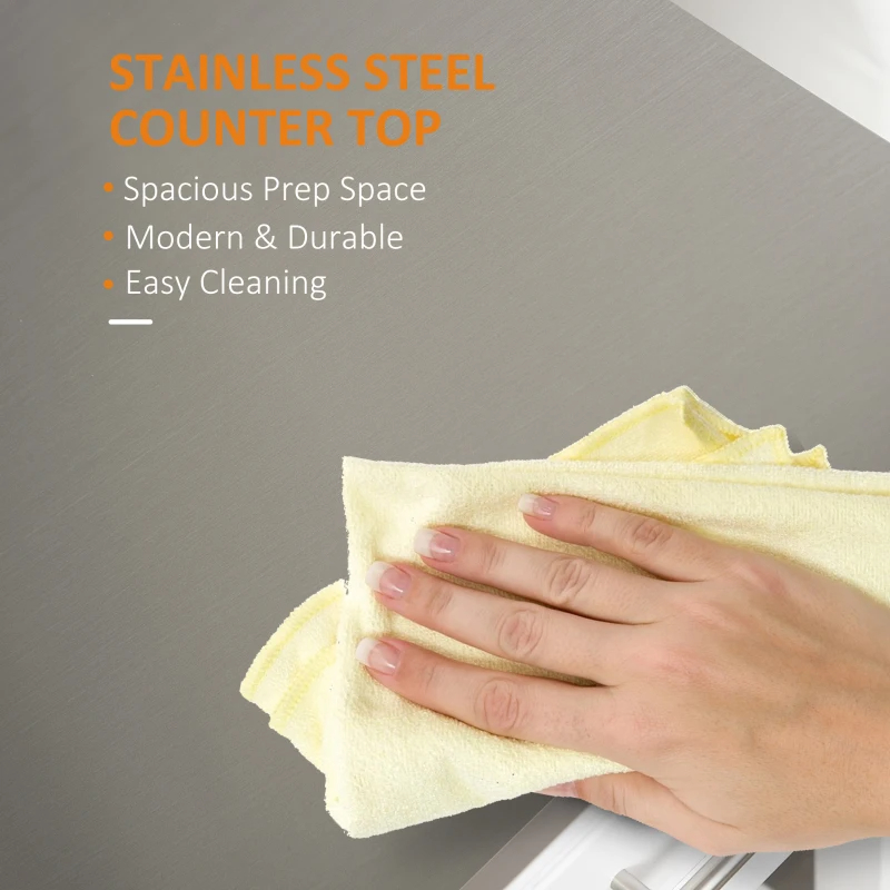 - - Stainless steel countertop for food preparation and storage of kitchen appliances