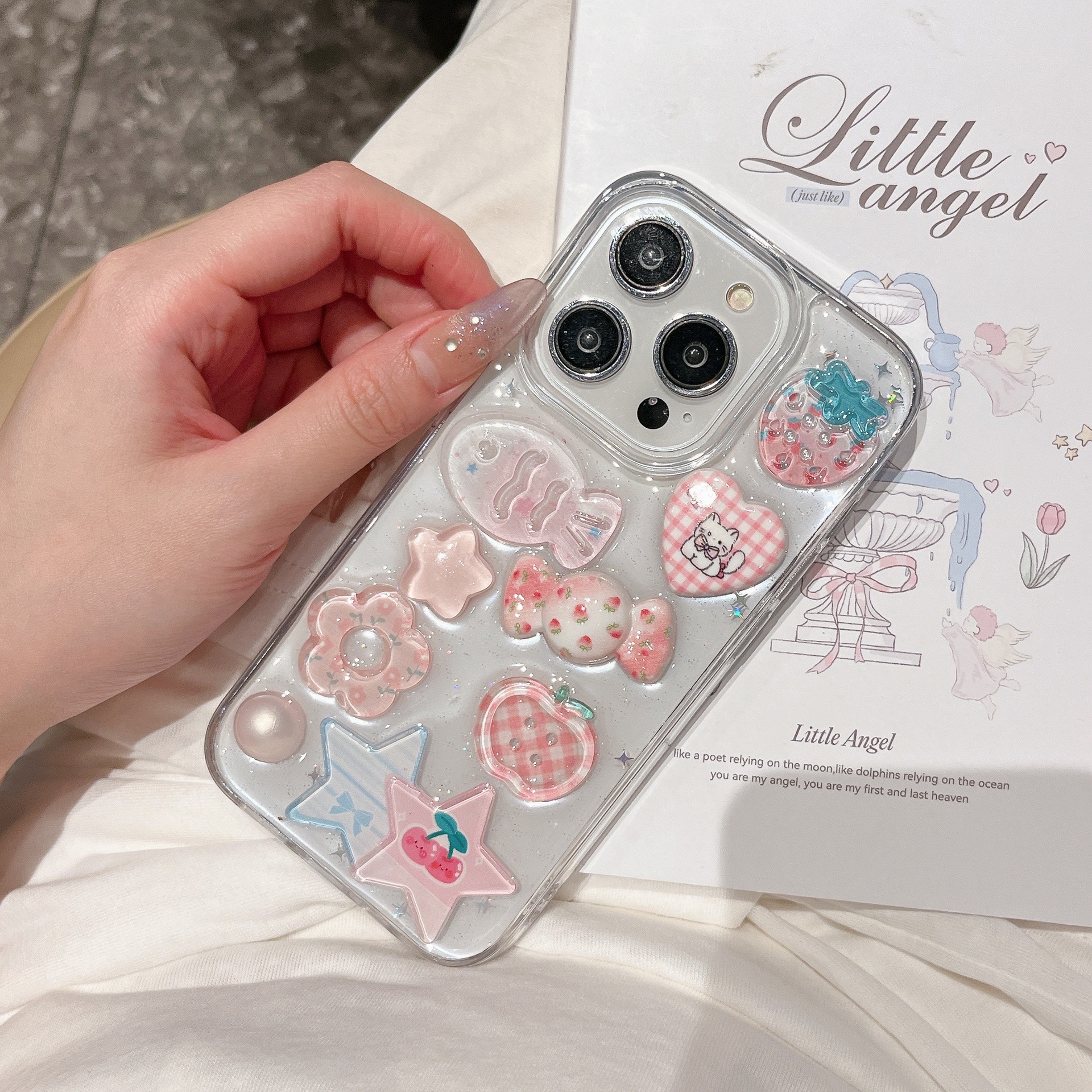 Korean-style 3D Strawberry And Fish Phone Casecompatible With Device Name