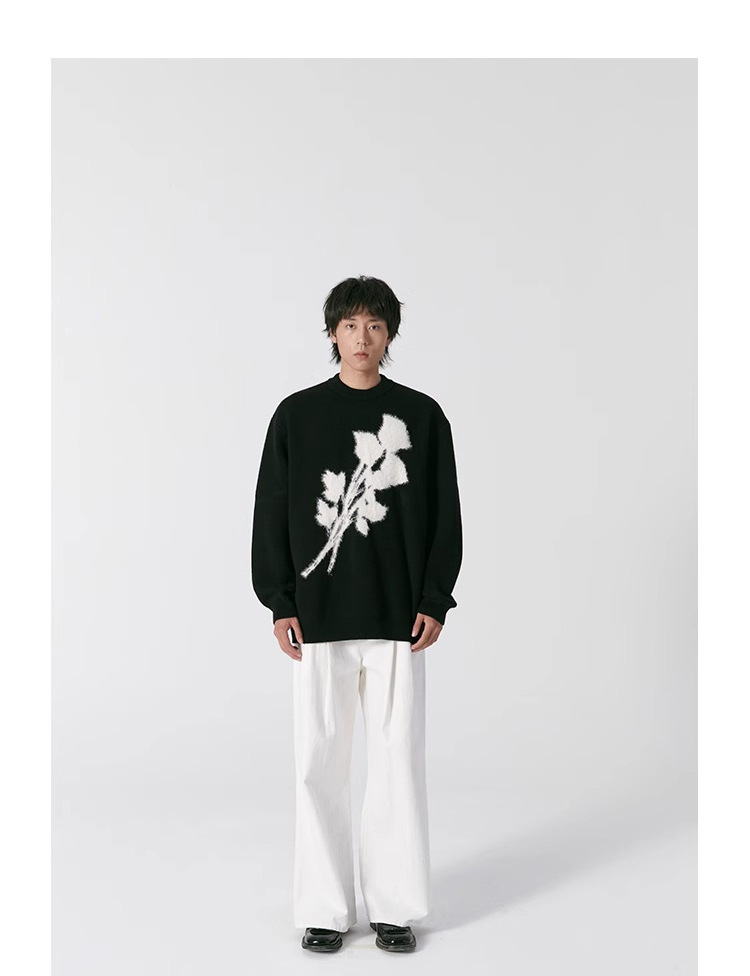 Korean-style Niche Vintage Rose Jacquard Sweater For Men