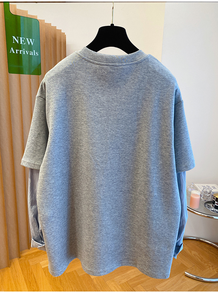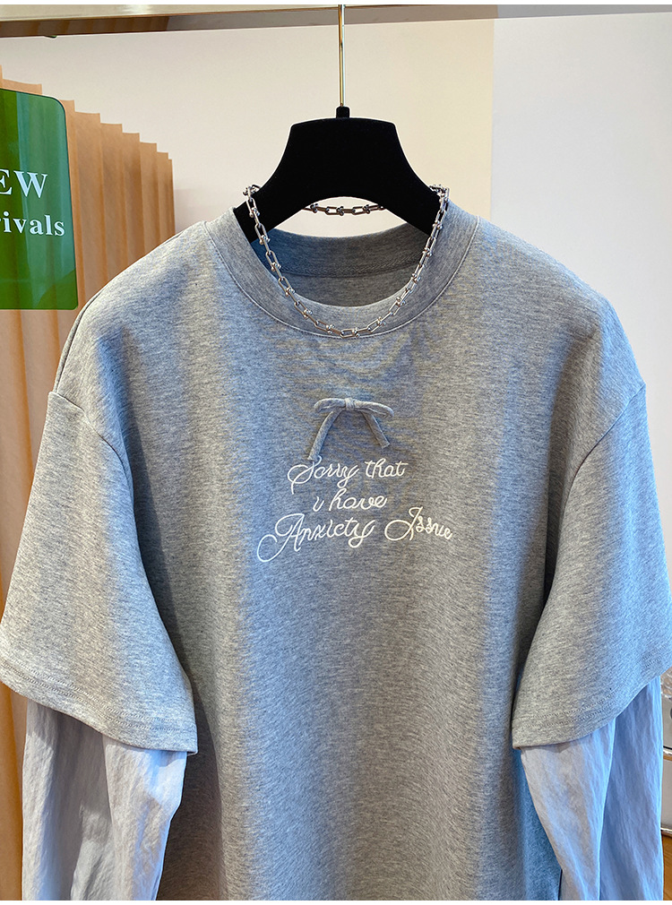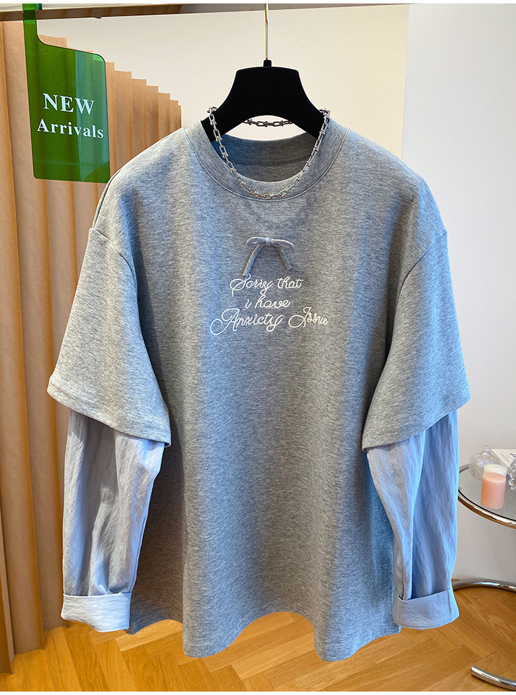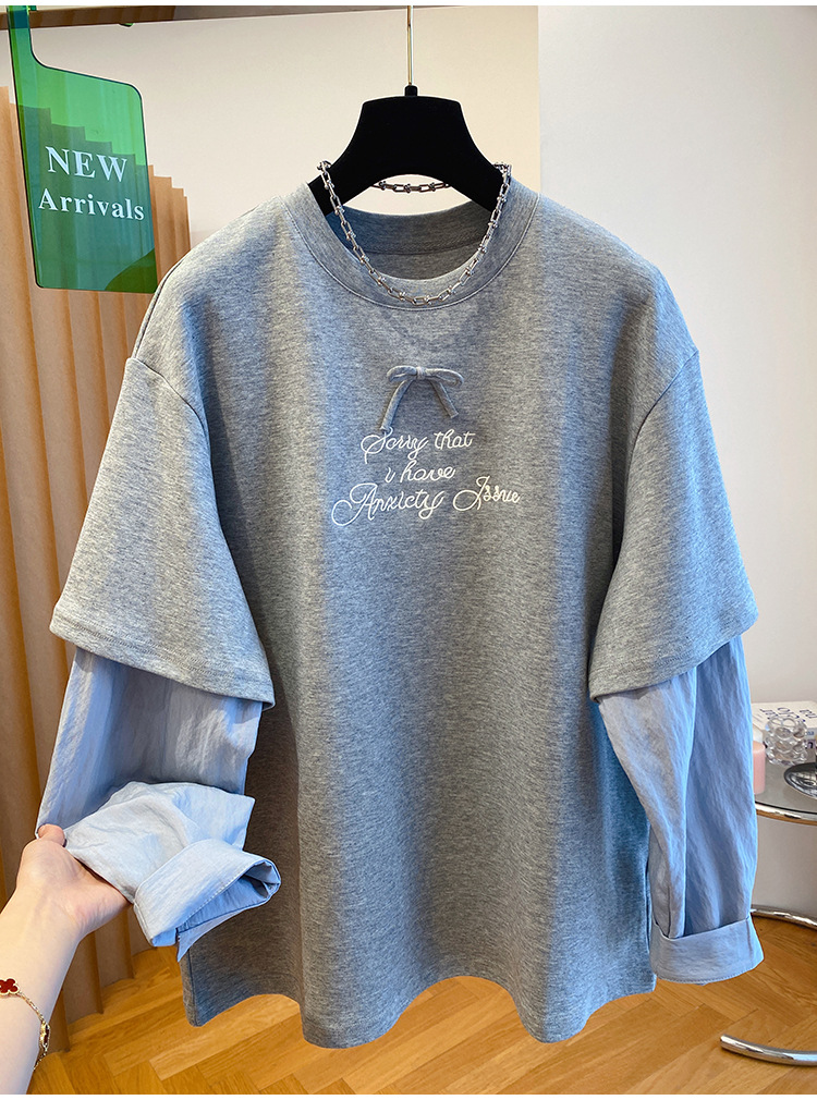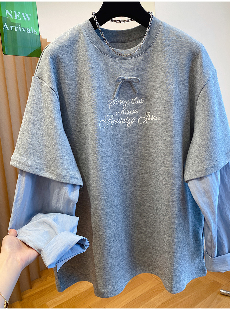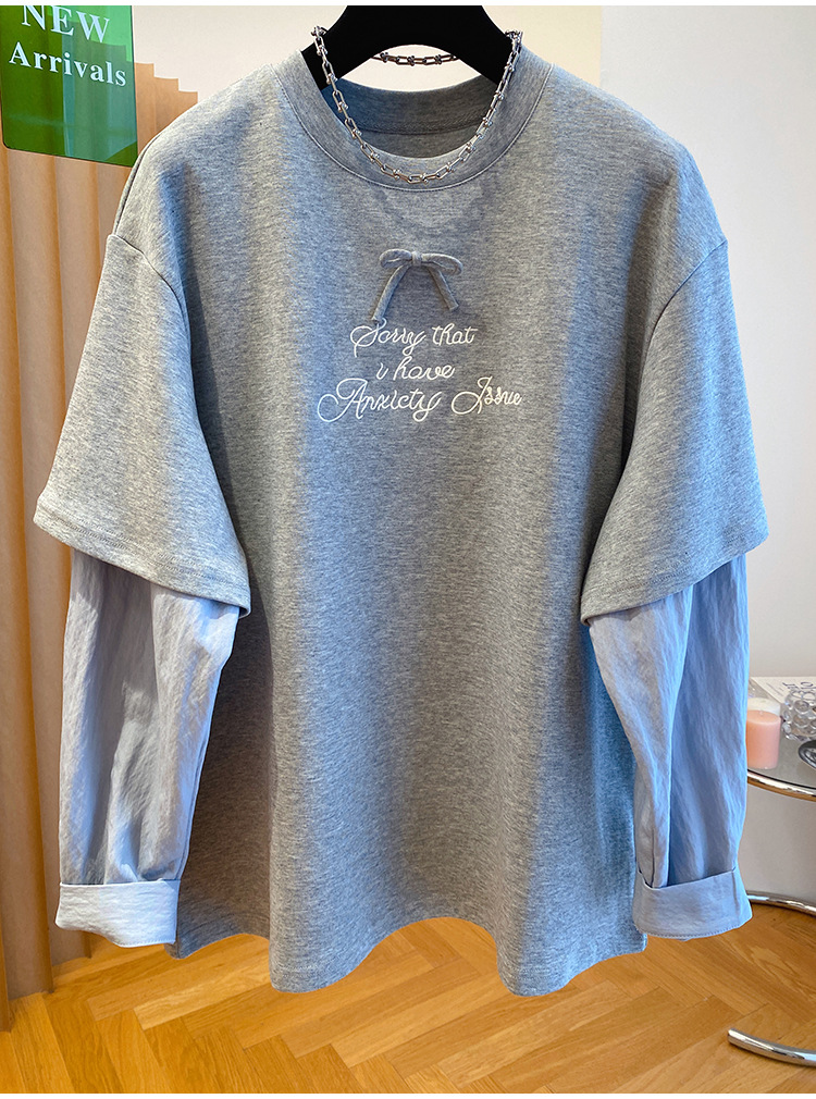 Korean-style Relaxed Faux Two-piece Long-sleeve Top