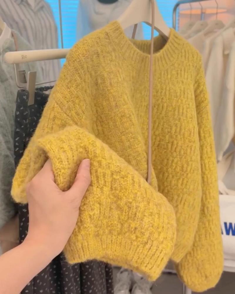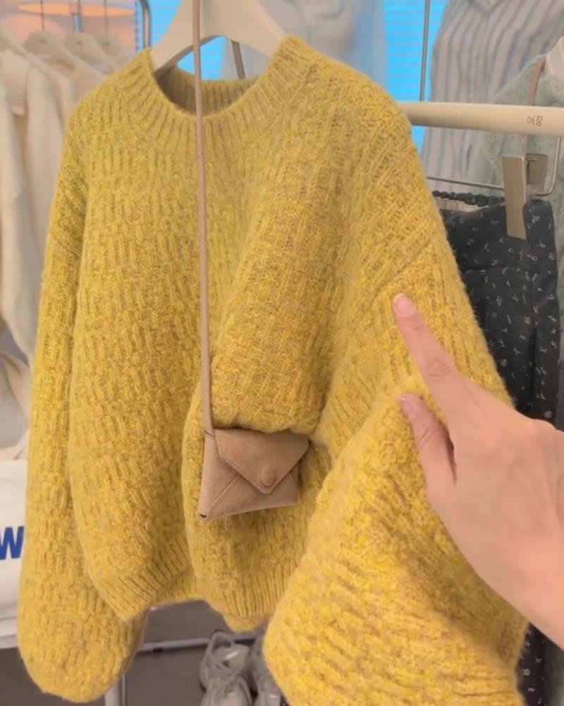 Korean-style Trendy Light Yellow Loose Crew-neck Sweater