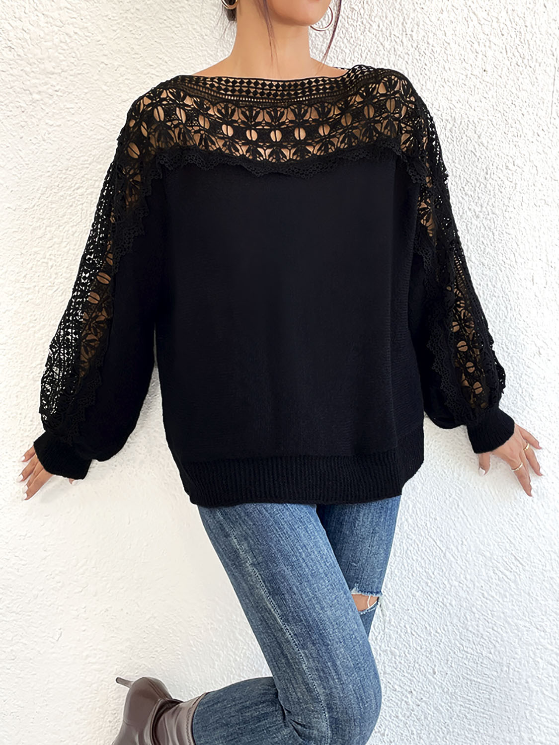 Lace-Panel Off-the-Shoulder Sweater Pullover