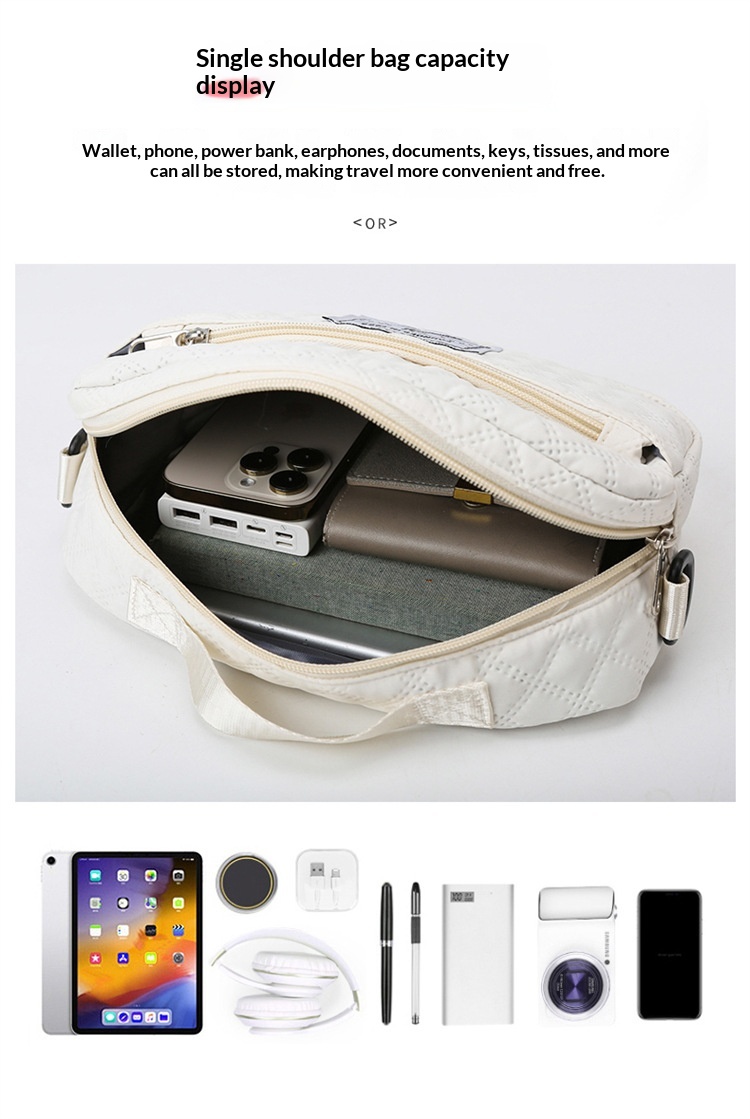 Large-Capacity Quilted Embroidered Thread Handle Crossbody Storage Travel Bag