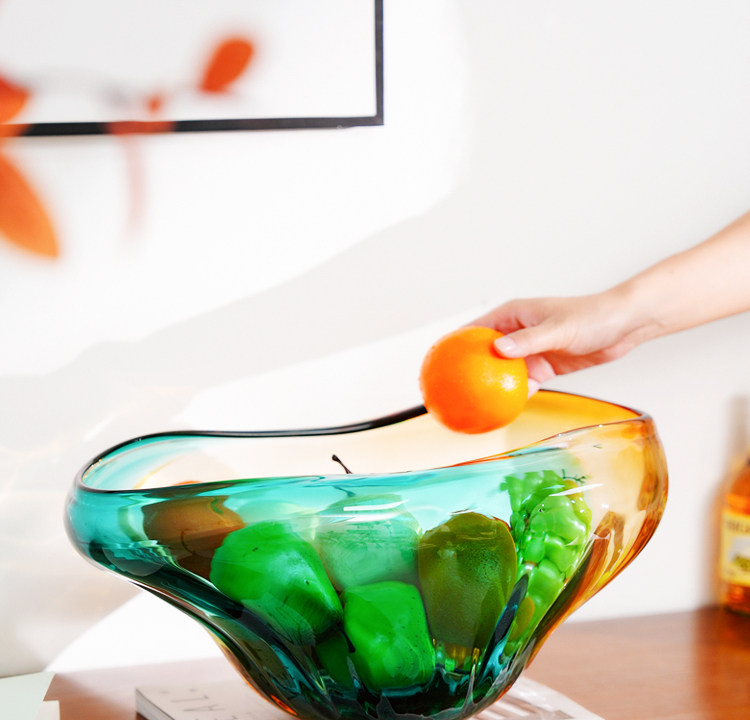 Light-luxury Colorful Glass Fruit Bowl A Stylish Tabletop Organizer For Fruits And Dried Snacks