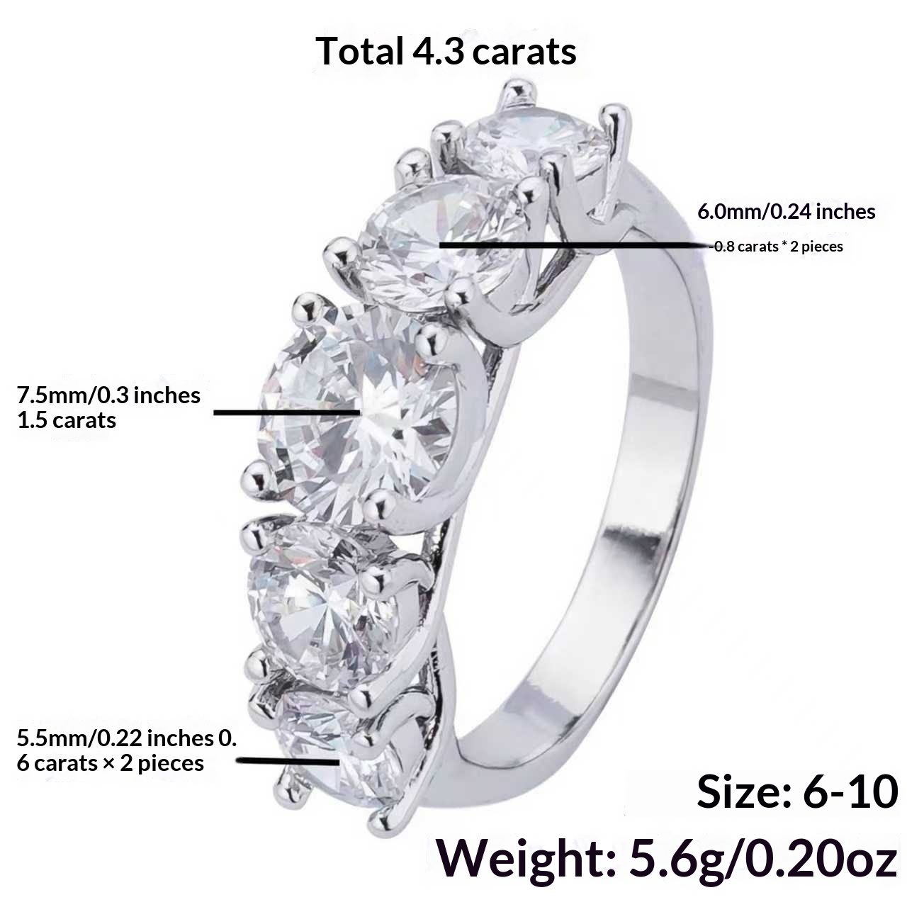 Product information:Type: Ring Craftsmanship: Diamond Setting Color: White Gold Tone Sizes: Size 6, Size 7, Size 8, Size 9, Size 10 Style: Women’s Material: Zircon Shape: Wavy Trendy Element: Round St...