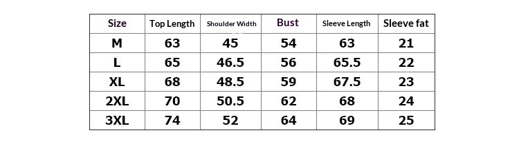 Sizes: S, M, L, XL, 2XL, 3XL