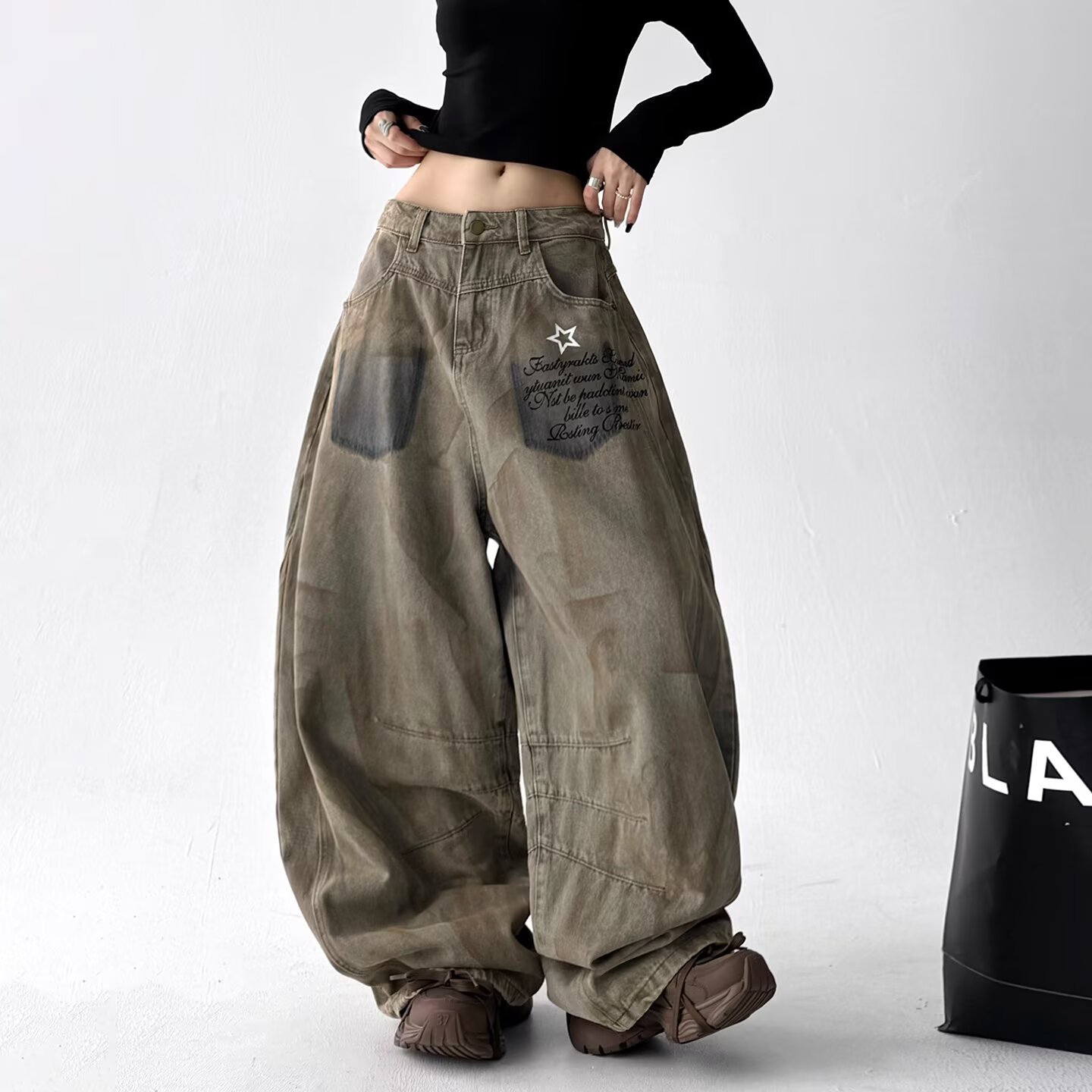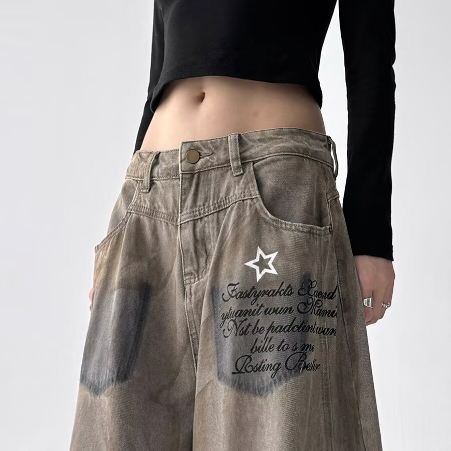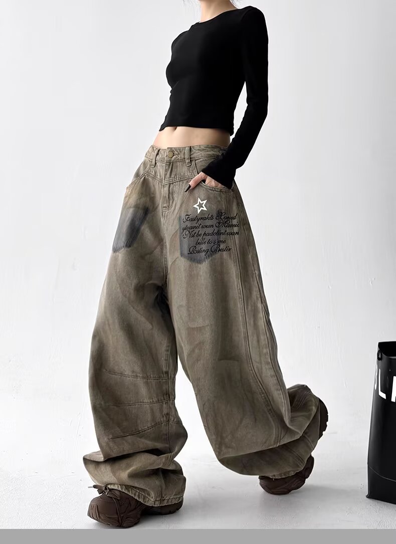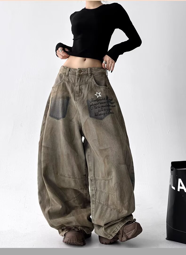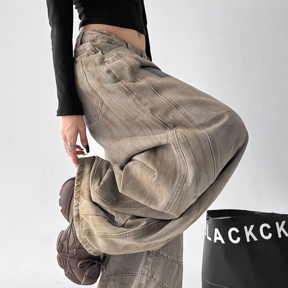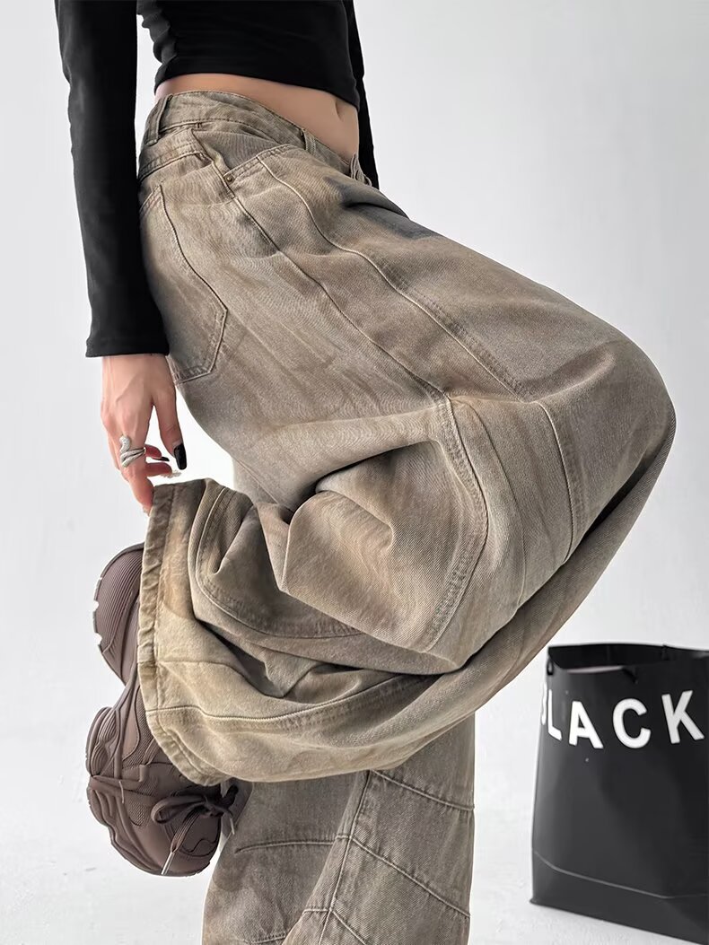 Product information:Color: 3073 Denim Pants – Khaki Stretch: No stretch Pants Length: Full-length pants Waist Style: High waist Sizes: S, M, L, XL, 2XL, 3XL Style Type: Streetwear Hipster Trendy Eleme...