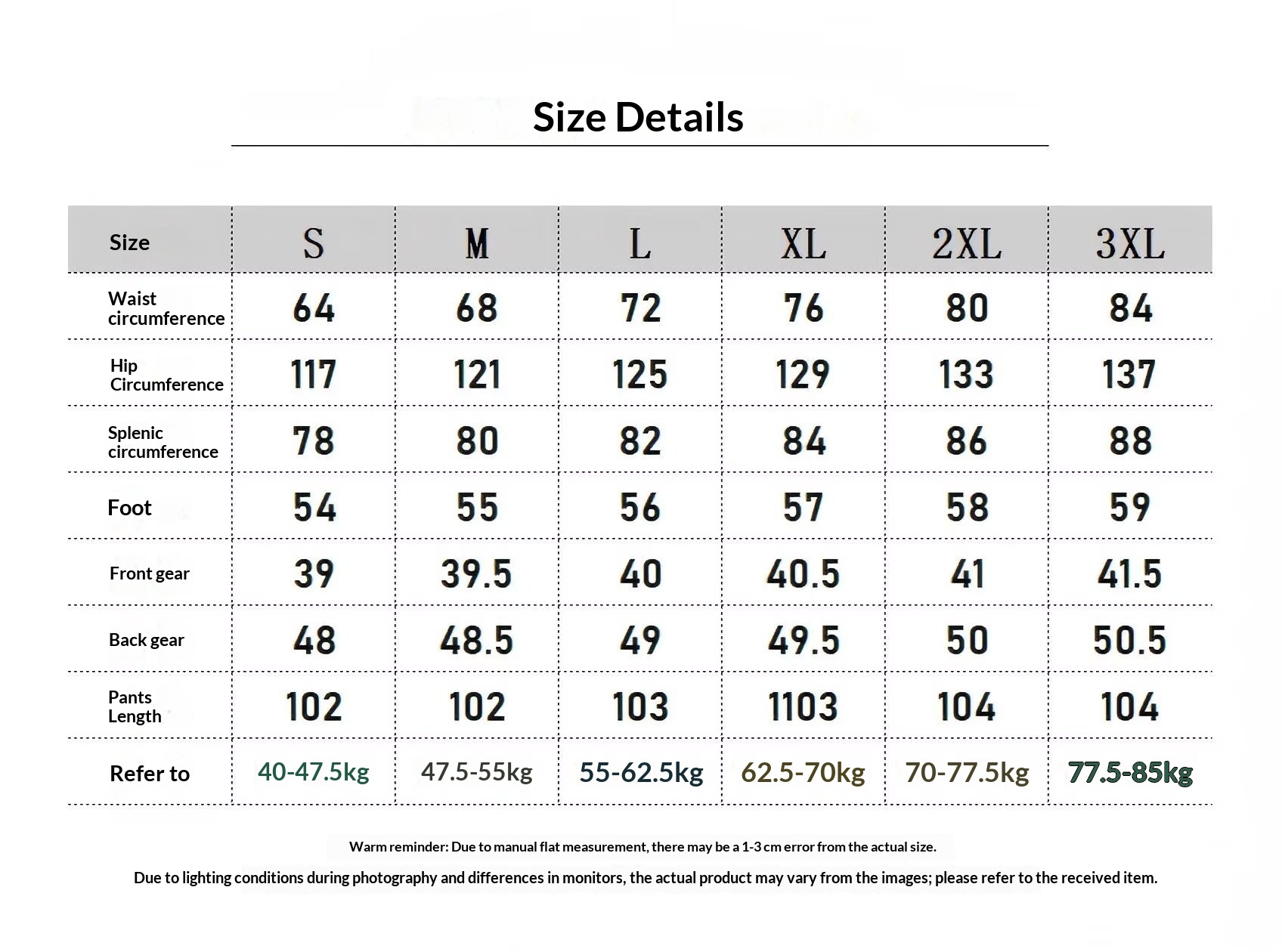 Sizes: S, M, L, XL, 2XL, 3XL