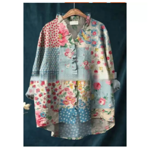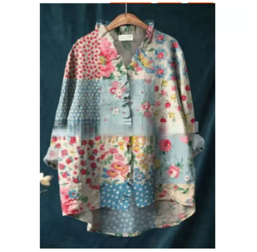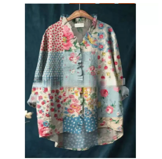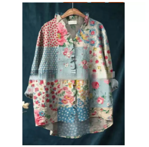 Loose-fitting Printed Crew-neck Casual Plus-size Womens Top
