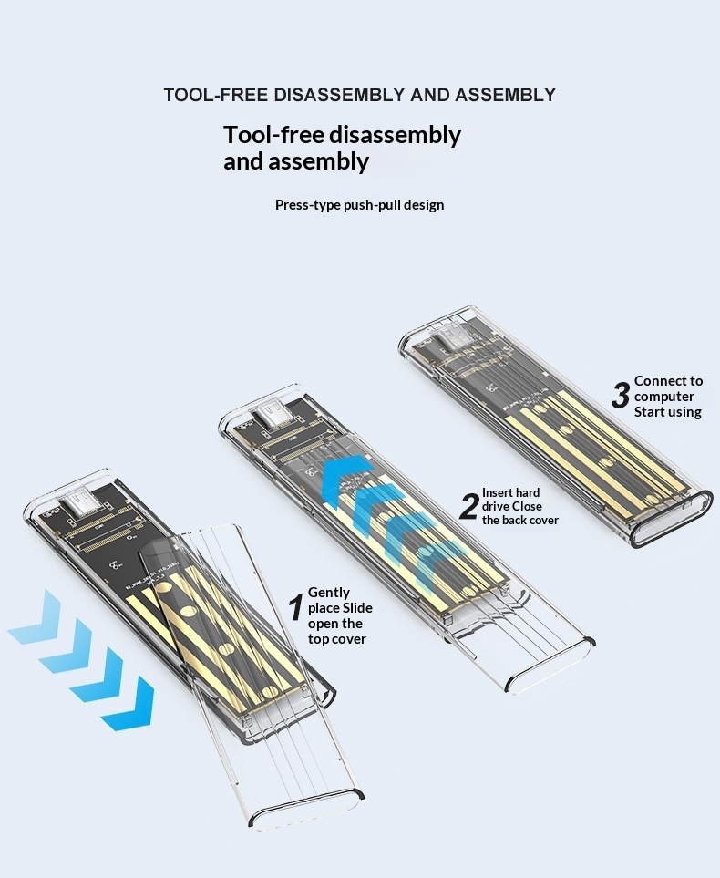 Product information:Color: NGFF single-protocol (A-to-C cable), NVMe single-protocol (A-to-C cable) Processing Method: OEM/ODM Product Dimensions: 103 x 32 x 11 mm Material: PC Package Contents: Hard...