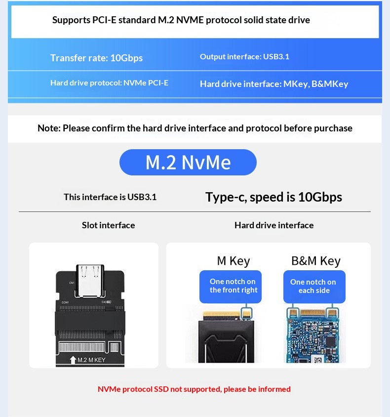 Color: NGFF single-protocol (A-to-C cable), NVMe single-protocol (A-to-C cable)