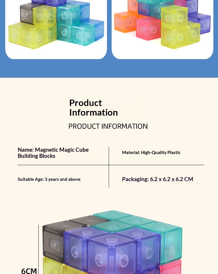 Product information:Color: Magnetic Cube Building Blocks (Colored Box) Suitable Age: Children (4–6 years) Material: Plastic Packaging: Colored Box Category: Educational Cube Packing list: 1* Toy P...