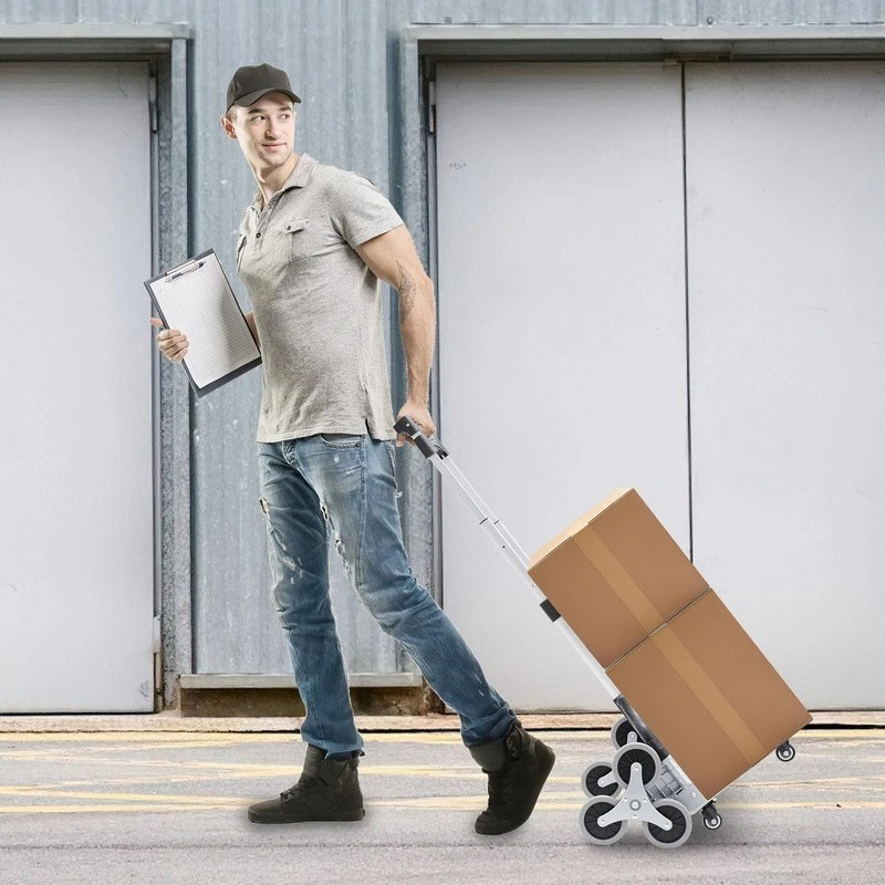 Product Features:- Durable and Stable: Our stair hand truck features a one-piece aluminum alloy frame. The wheel suspension, frame, telescopic handle, and cargo area are all made of high-quality aluminum alloy, ensuring durability and long service life.