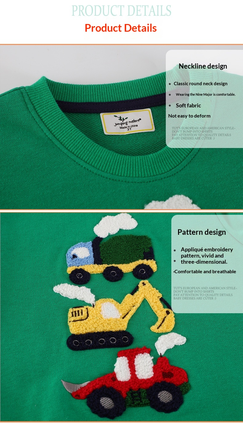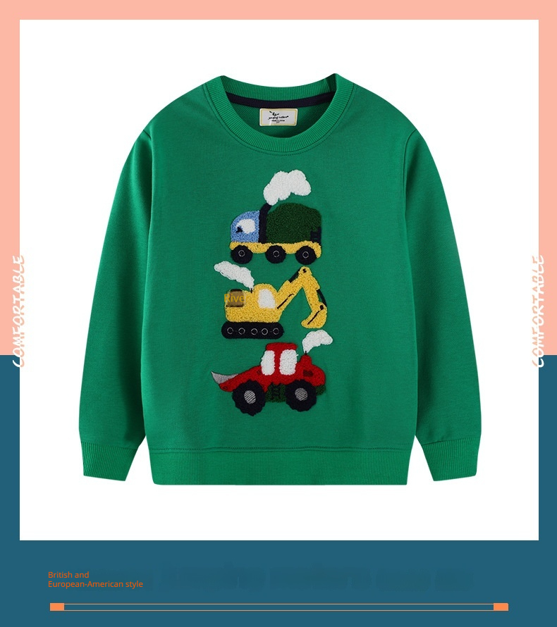 Mao Mao Embroidered Excavator Crew-Neck Long-Sleeve Childrens Top
