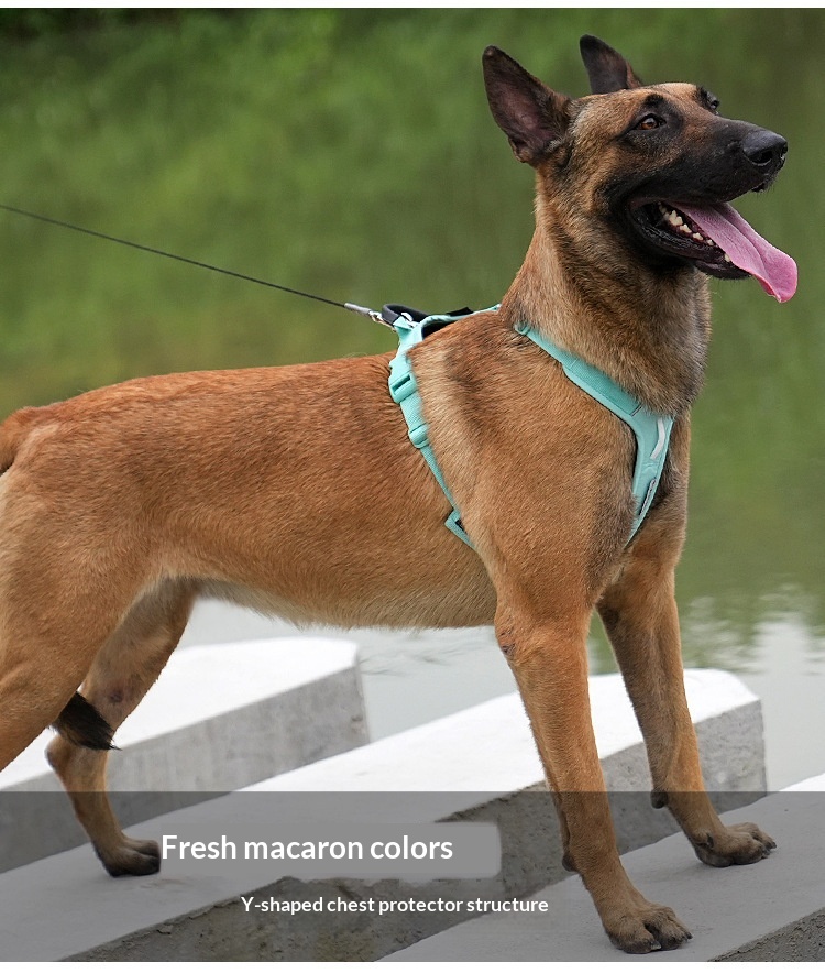 Product information:Color: Aqua green, lemon green, black, orange, watermelon red, sky blue Material: Nylon Category: Pet Collars and Leashes Size: Packing list: Chest strap *1 Product Image:...