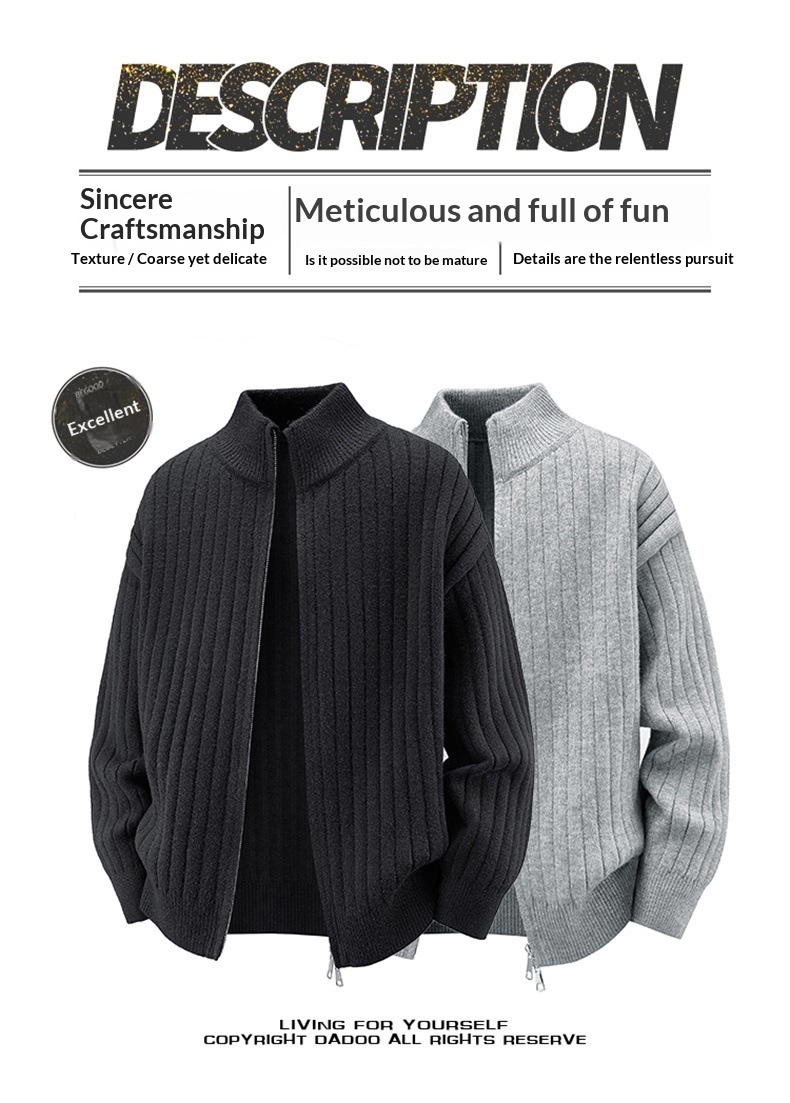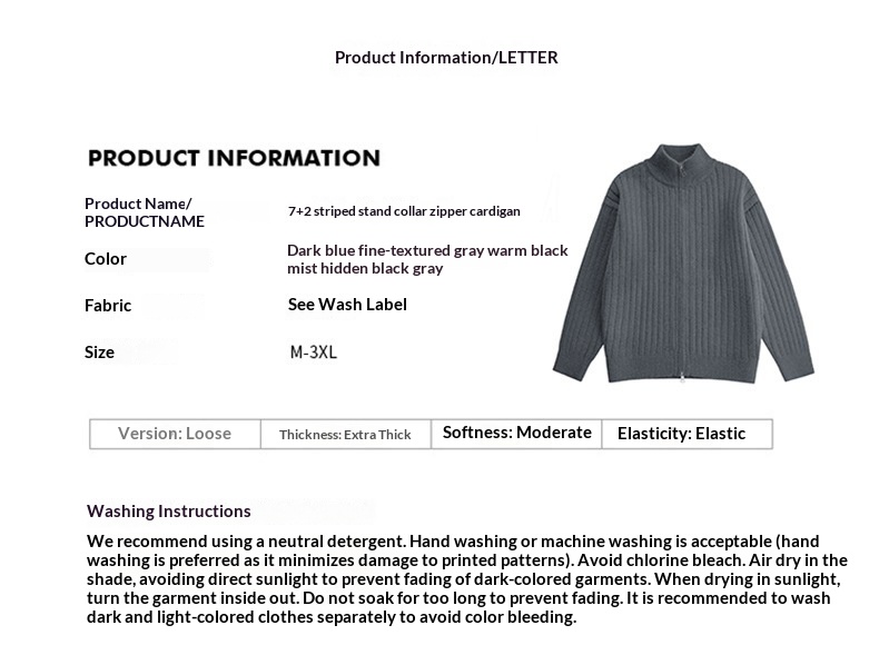 Product information:Color: Tibetan Ink Blue, Fine-Woven Gray, Warm Black, Misty Hidden Black-Gray Target Audience: Young Adults Sizes: M, L, XL, 2XL, 3XL Fit: Relaxed Fit Style: Cardigan Thickness: Ex...