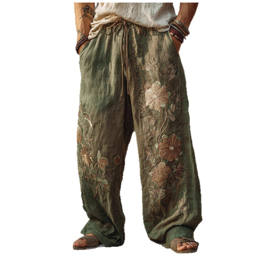 Mens Casual Fashionable Loose Straight-Leg Pants With Digital Print