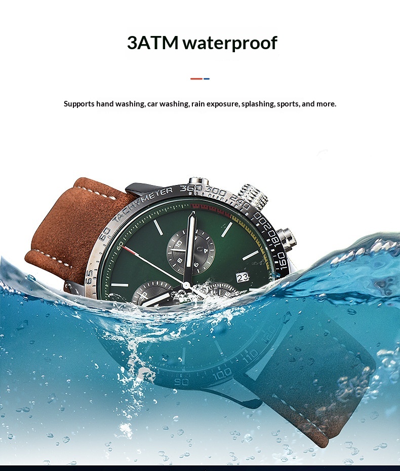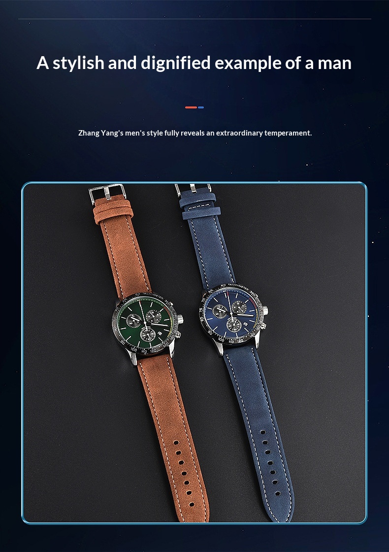 Mens Fashion Calendar Leather-Strap Quartz Watch