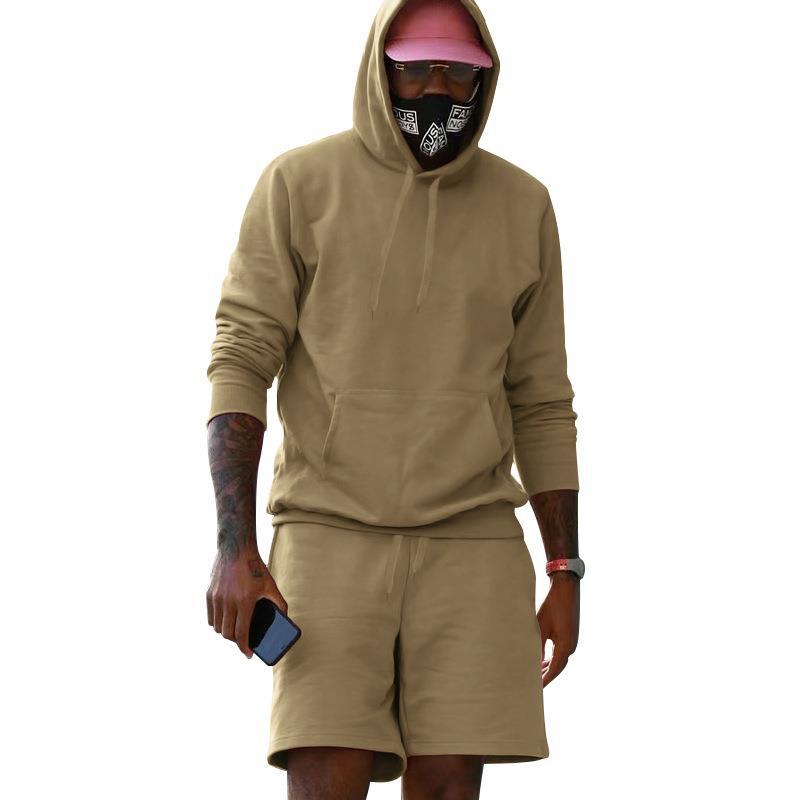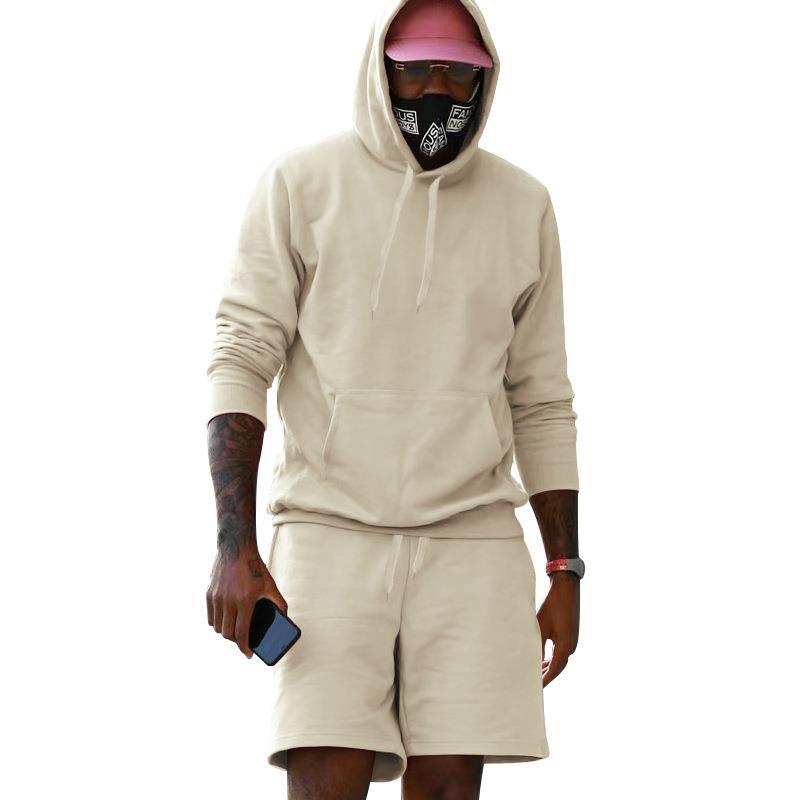 Mens Fleece-Lined Hoodie And Shorts Two-Piece Set