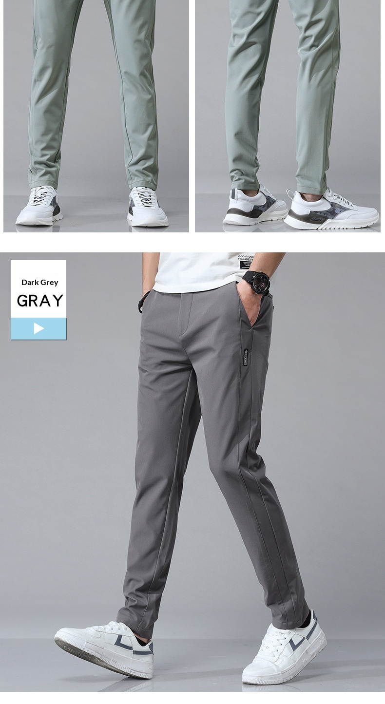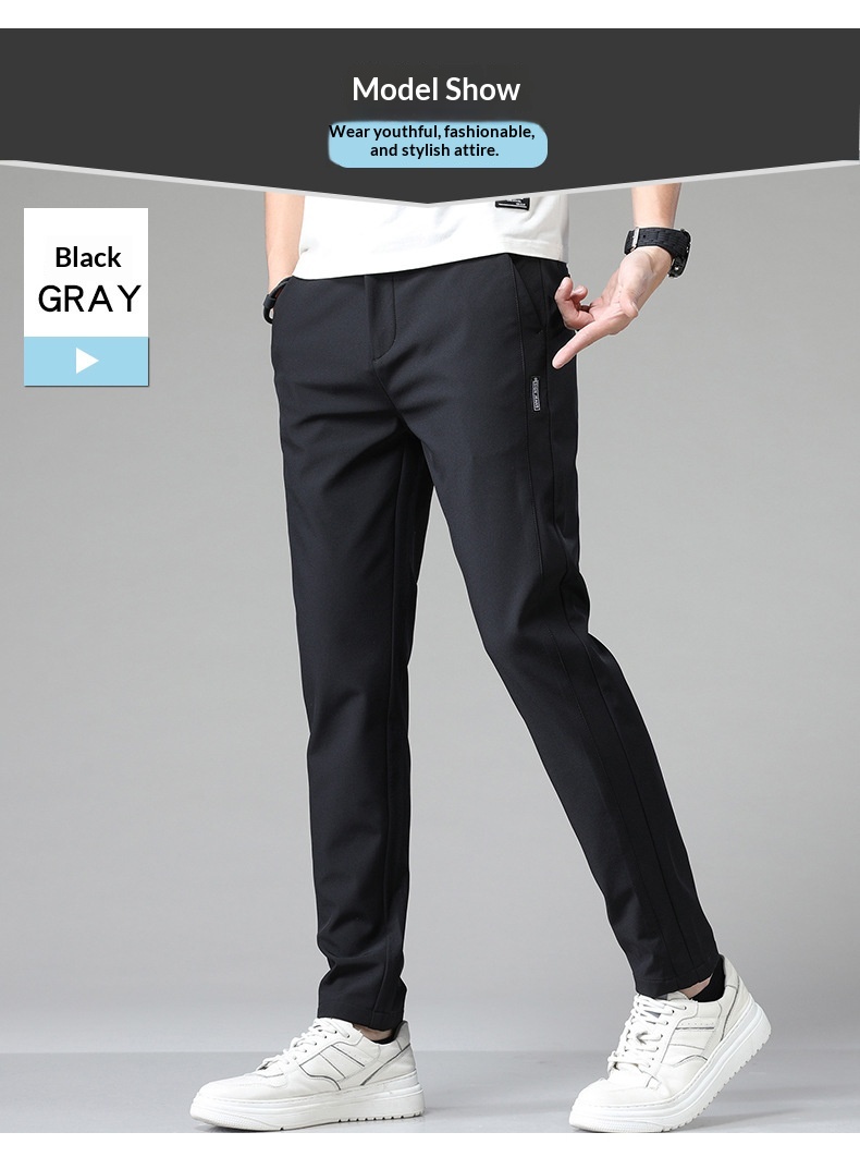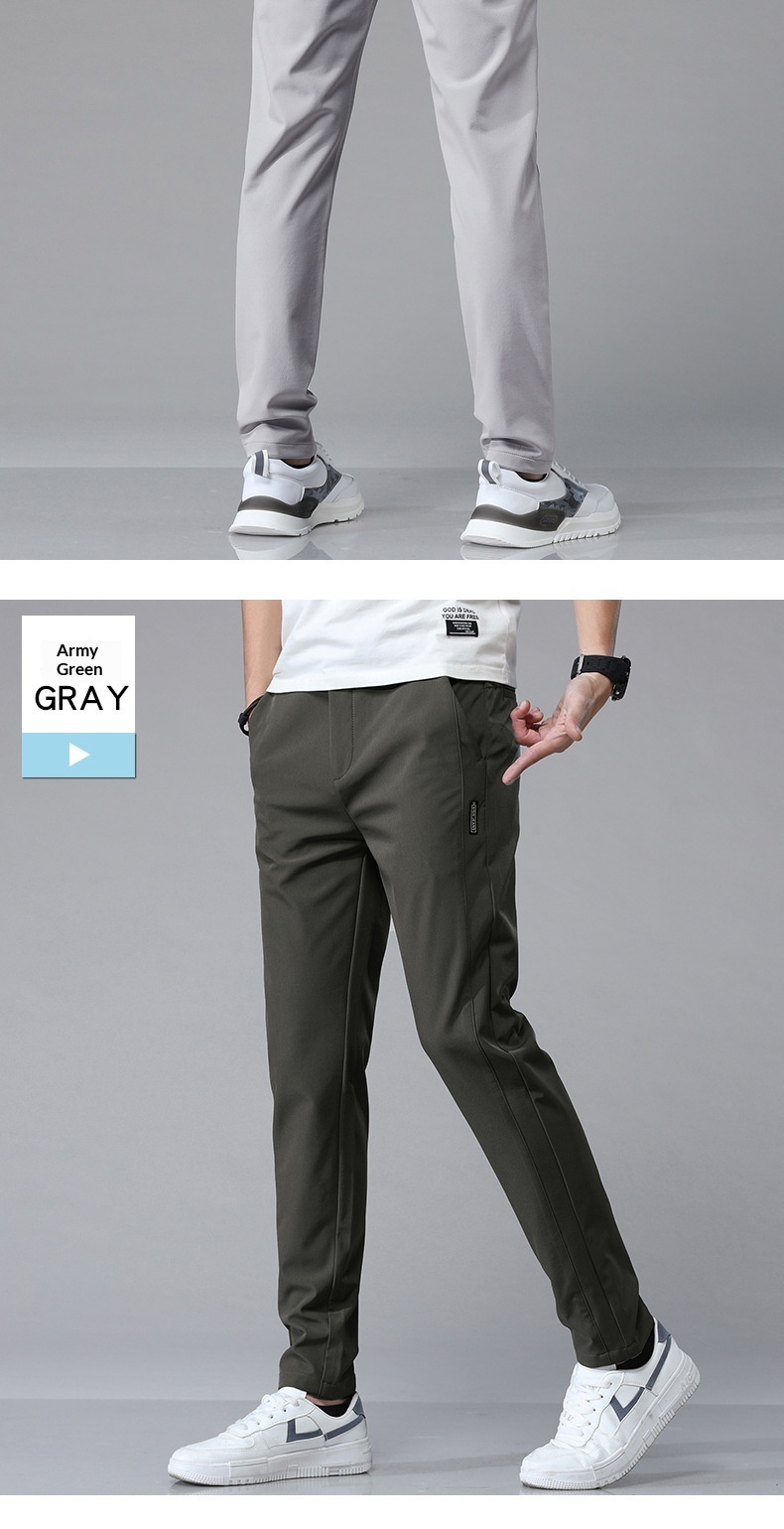 Mens Ice Silk All-Match Elastic-Waist Casual Pants With Fleece Lining For Autumn