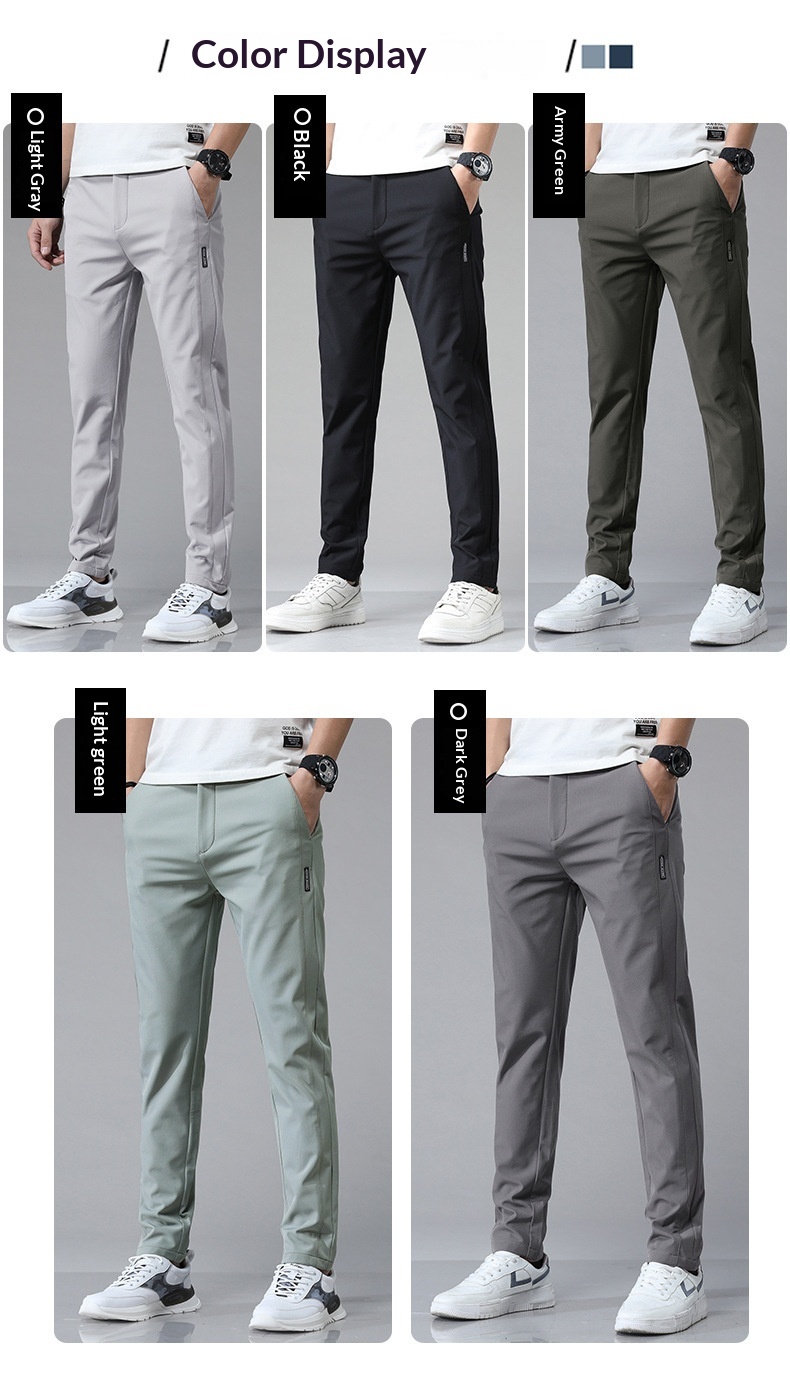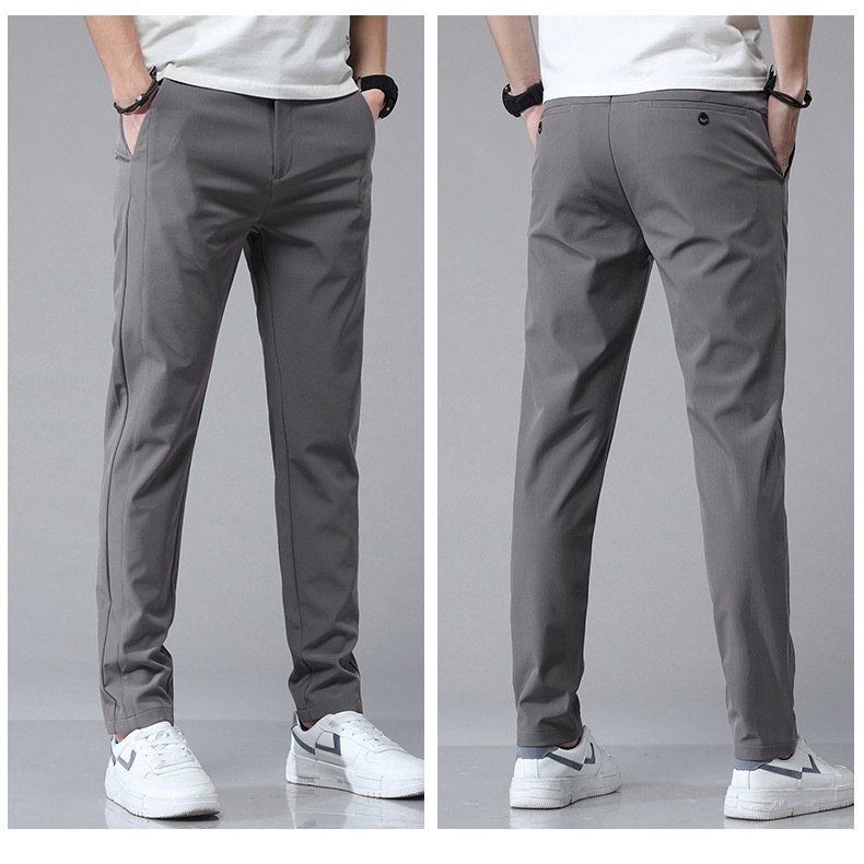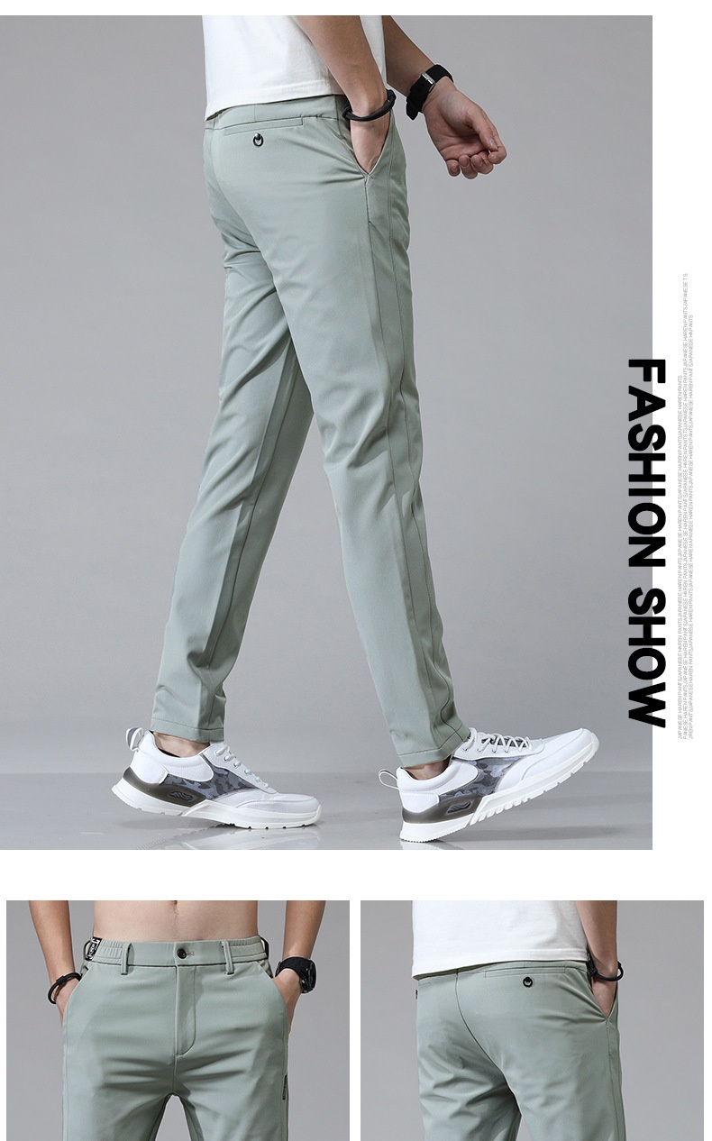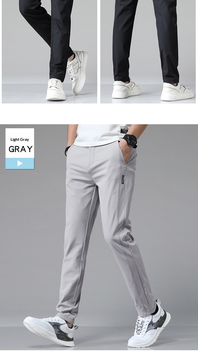 Mens Ice Silk All-Match Elastic-Waist Casual Pants With Fleece Lining For Autumn