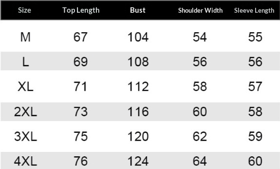 Sizes: M, L, XL, XXL, XXXL, 4XL