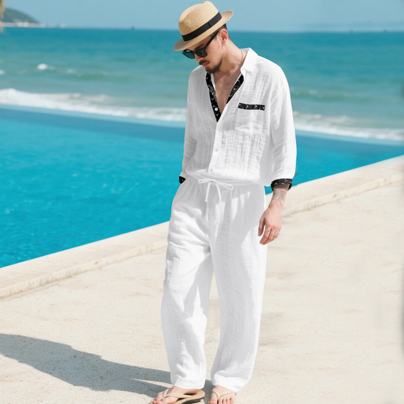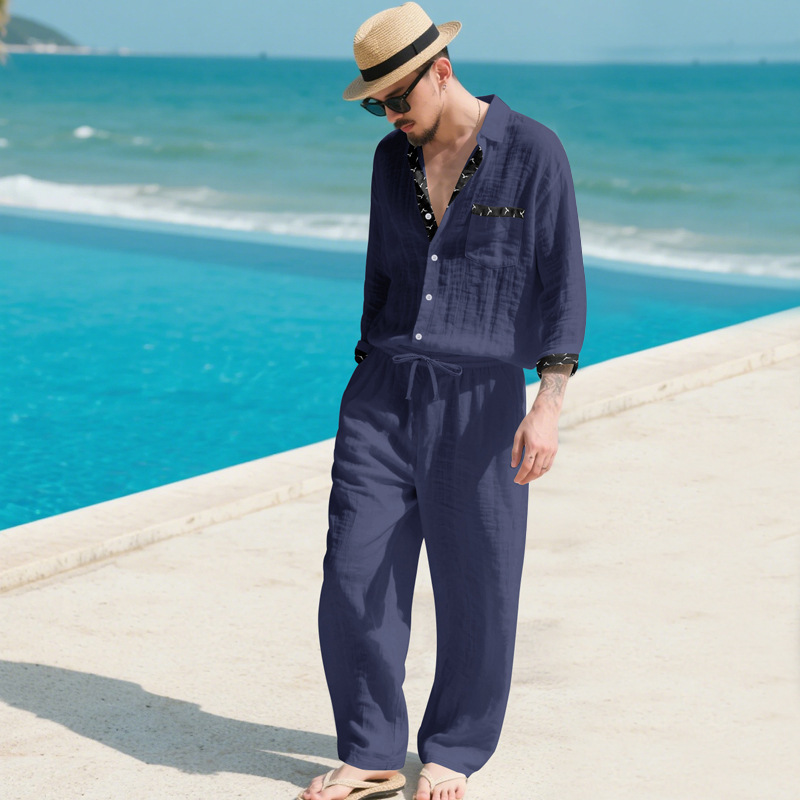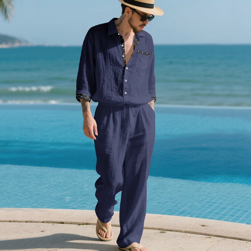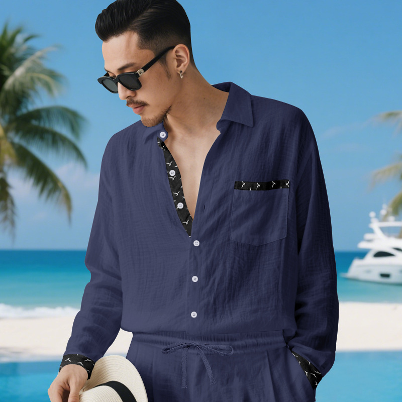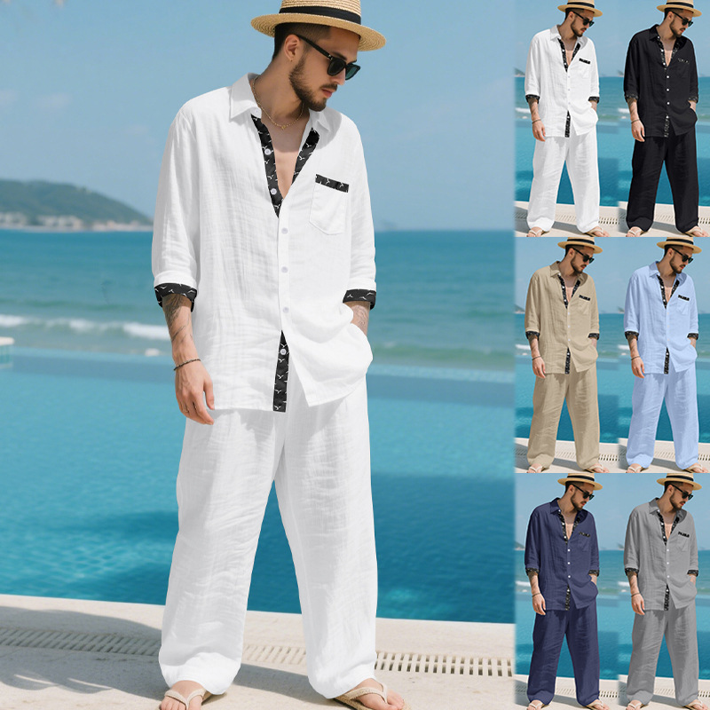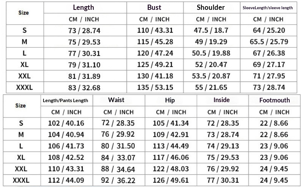 Product information:Color: Navy blue, dark gray, white, light khaki, black, light blue Sleeve Length (Top): Long sleeve Pants Length: Full-length pants Size: S, M, L, XL, XXL, XXXL Thickness: Regular...