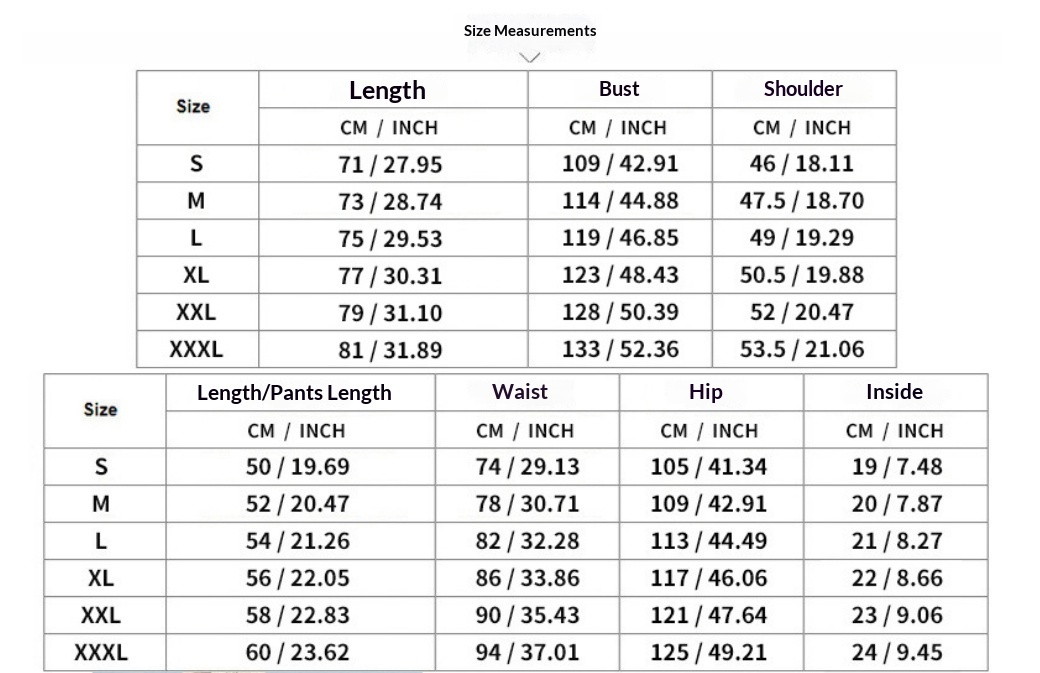 Sizes: S, M, L, XL, XXL, XXXL