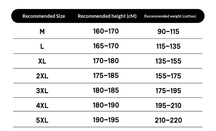Sizes: M, L, XL, XXL, 3XL, 4XL, 5XL