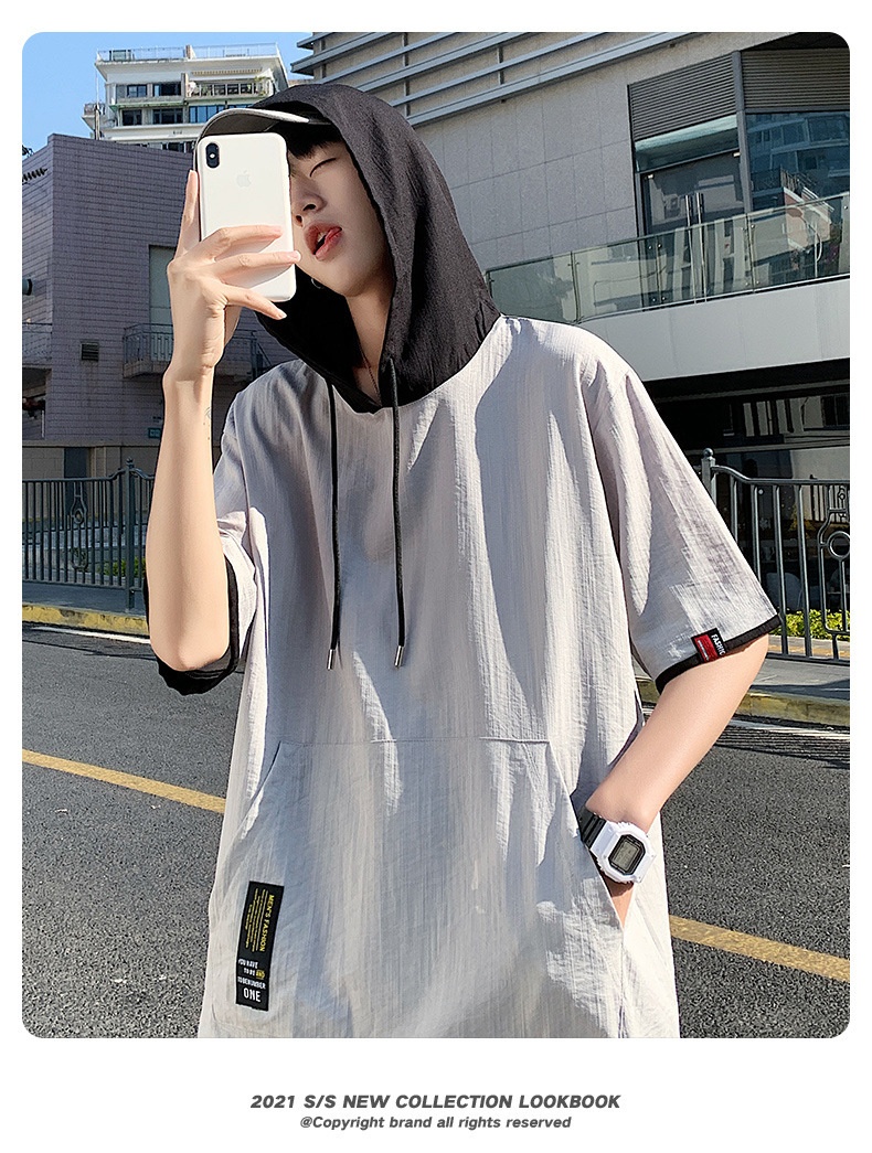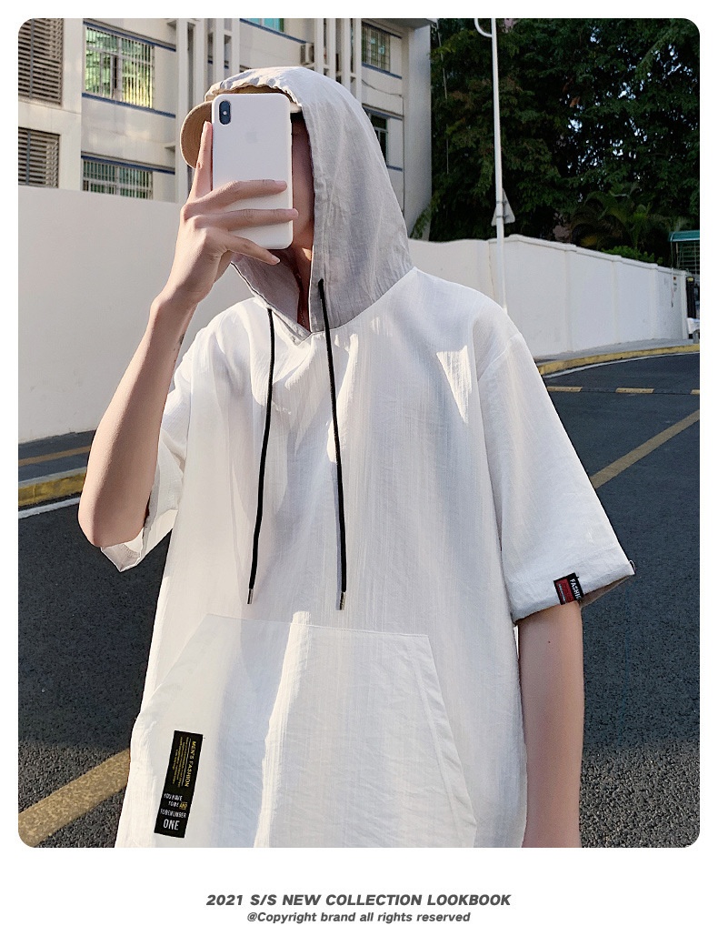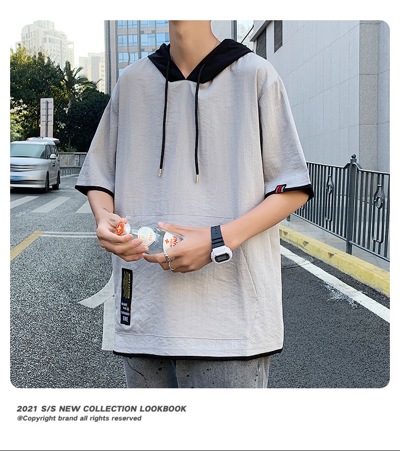 Product information:Color: White, gray, black, blue Size: M, L, XL, 2XL, 3XL Style: Pullover Fabric Name: Cotton and linen Hood: With hood Sleeve Length: Three-quarter/medium sleeve Suitable Season: S...