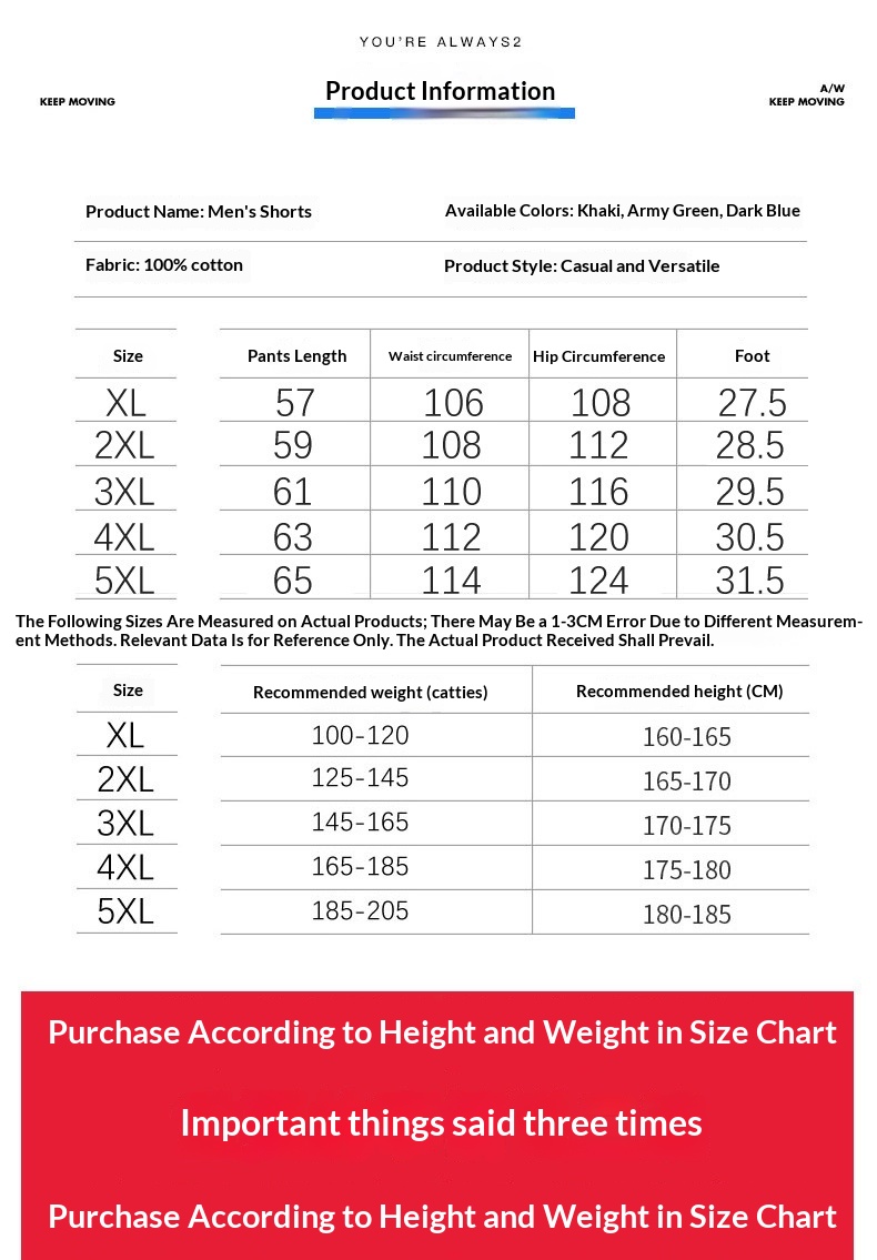 Colors: Khaki, Army Green, Dark Blue
