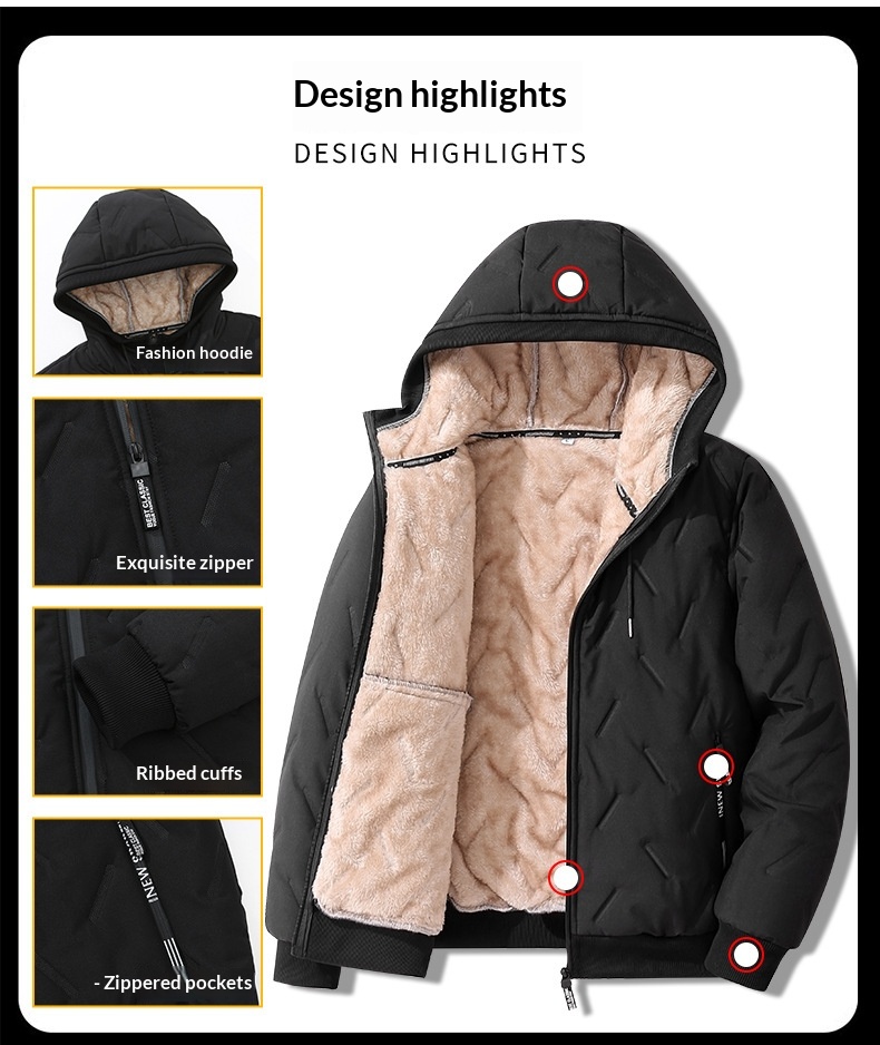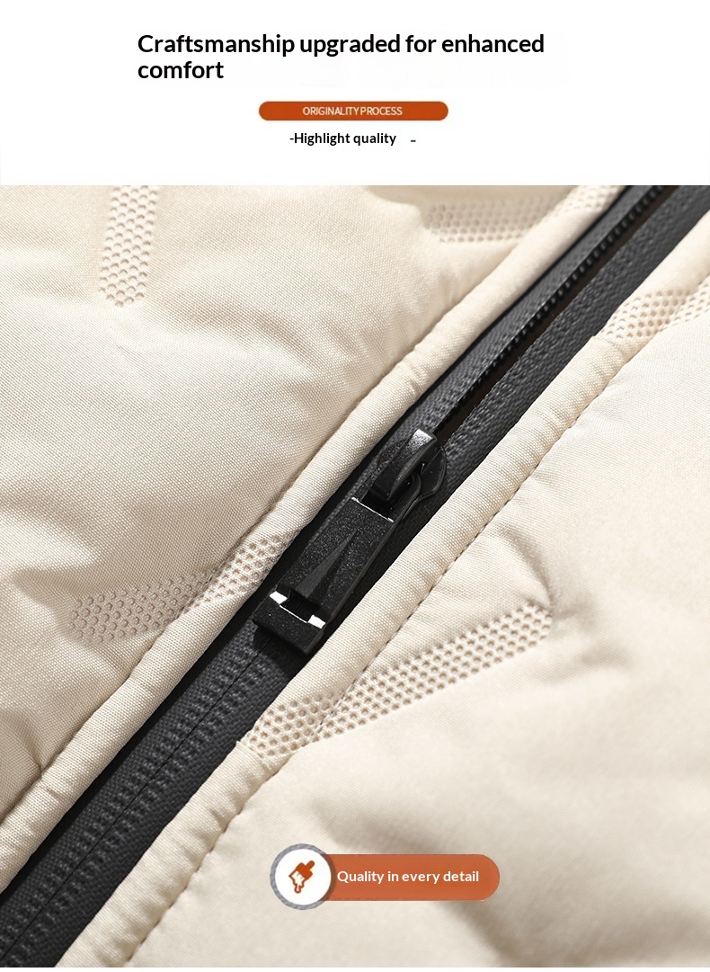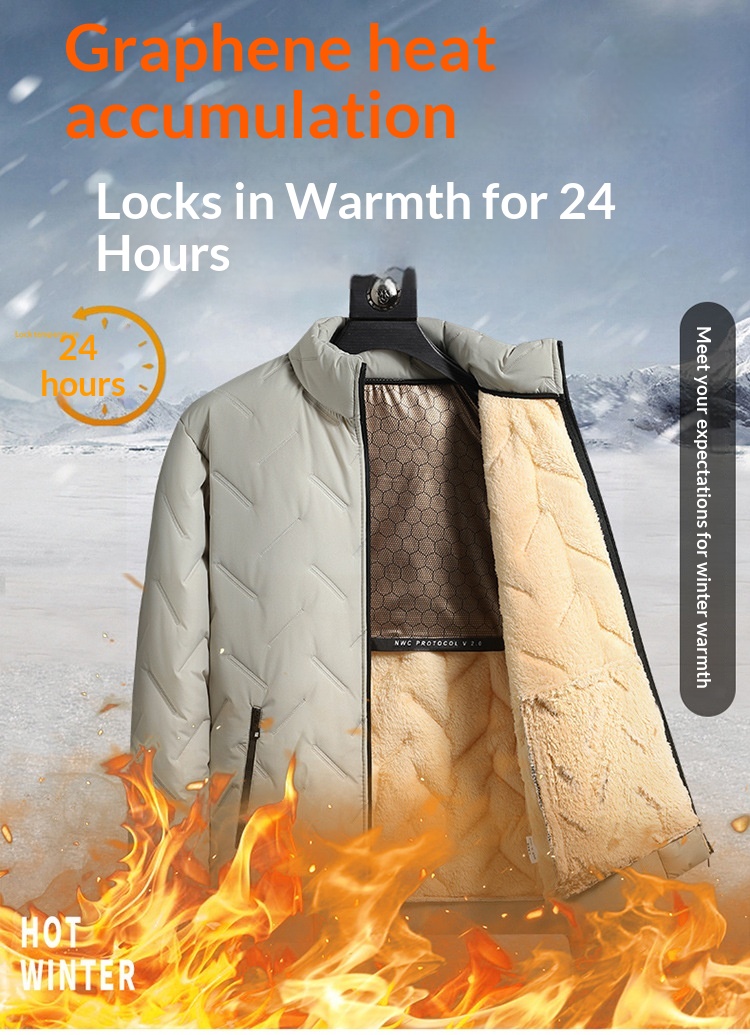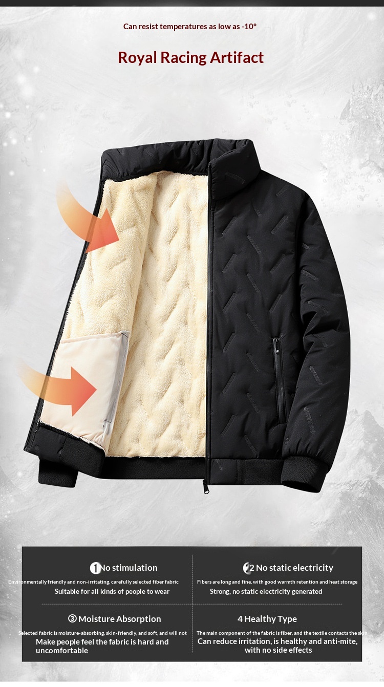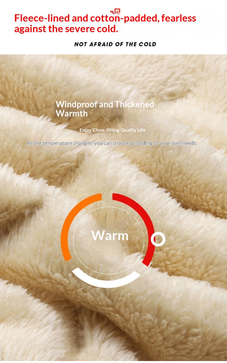 Mens Mid-Length Padded Fleece-Lined Cotton Coat With A Collar For Warmth