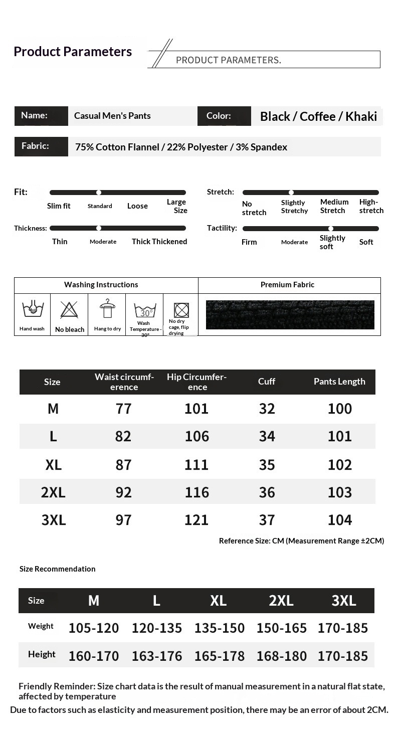 Product information:Pattern: Solid color Colors: Black, olive, coffee Stretch: Slight stretch Pants length: Full-length pants Waist style: Mid-rise Suitable for: Plus-size individuals Sizes: M, L, XL,...