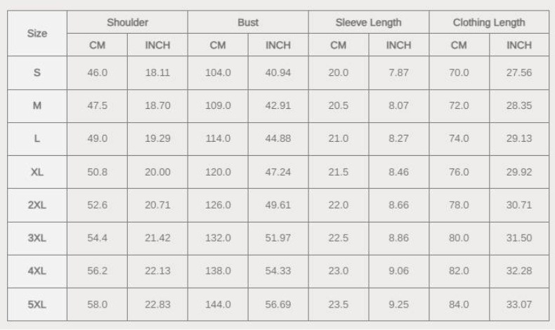 Sizes: S, M, L, XL, XXL, XXXL, 4XL, 5XL