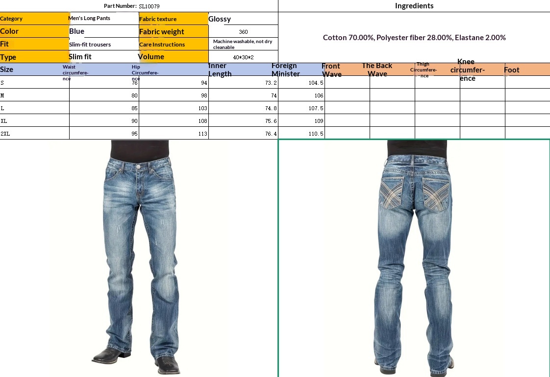Product information:Color: BlueStretch: Moderate stretchPants Length: Full-length pantsWaist Style: Mid-riseSuitable For: Young adultsSizes: S, M, L, XL, 2XLFly Style: Zipper flyStyle: Basic styleThic...