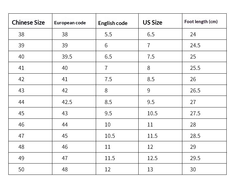 Size: 38, 39, 40, 41, 42, 43, 44, 45, 46, 47, 48