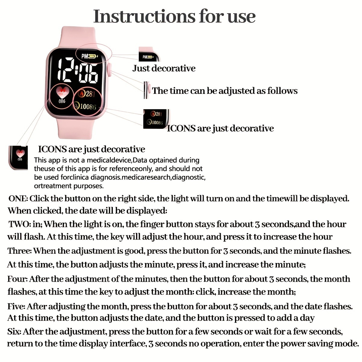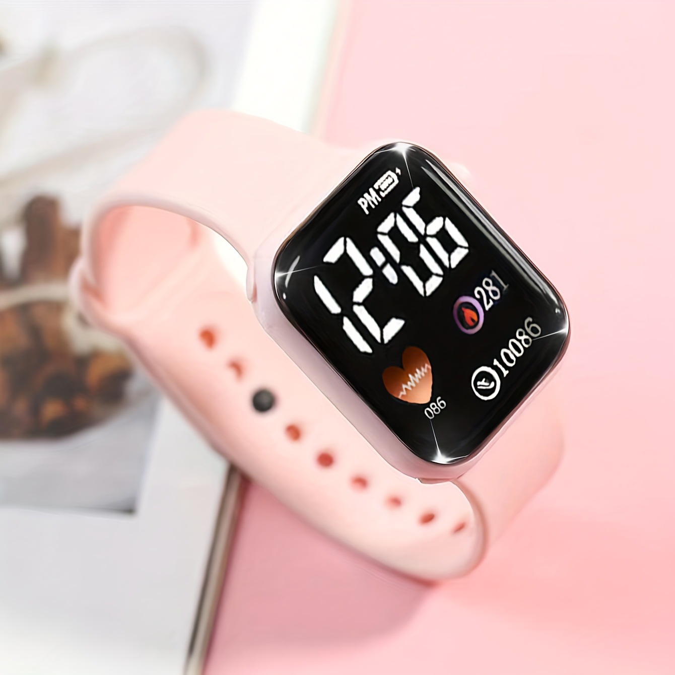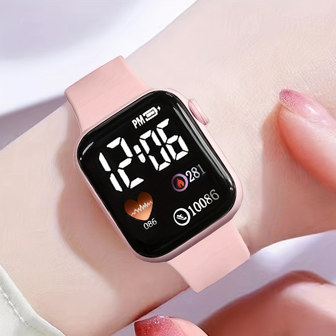Minimalist And Compact Heart-Shaped Dial Square LED Watch Necklace Earrings Ring Set