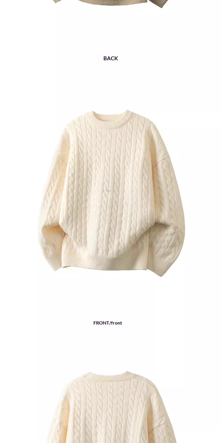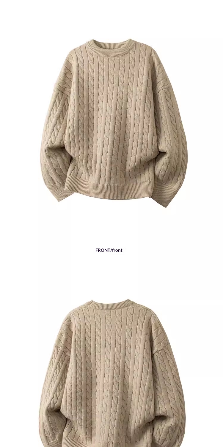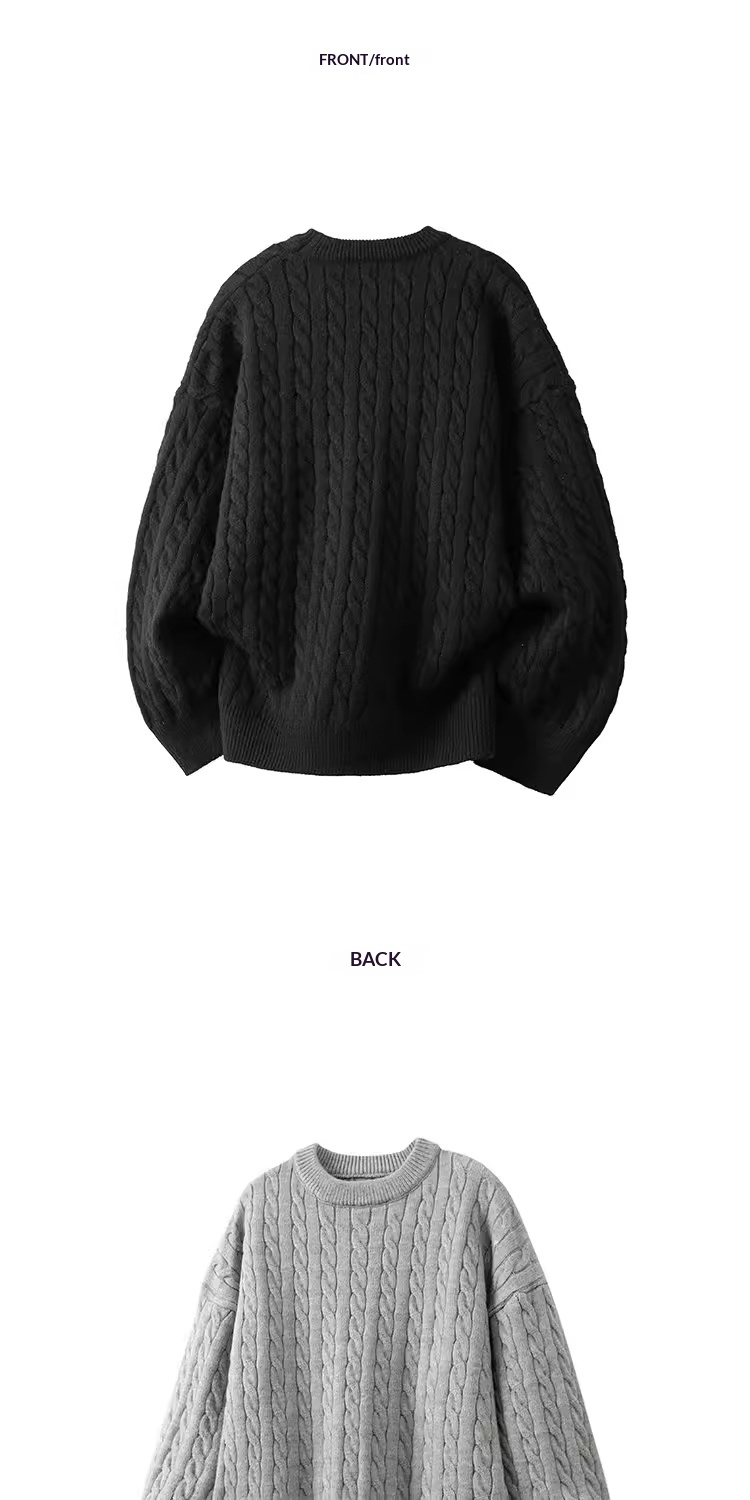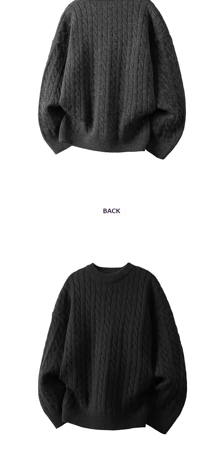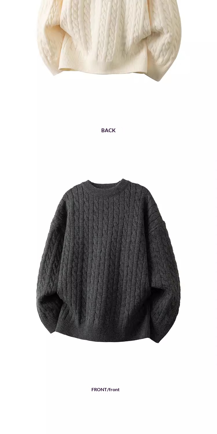Minimalist Old-fashioned Cable Knit Crew Neck Sweater