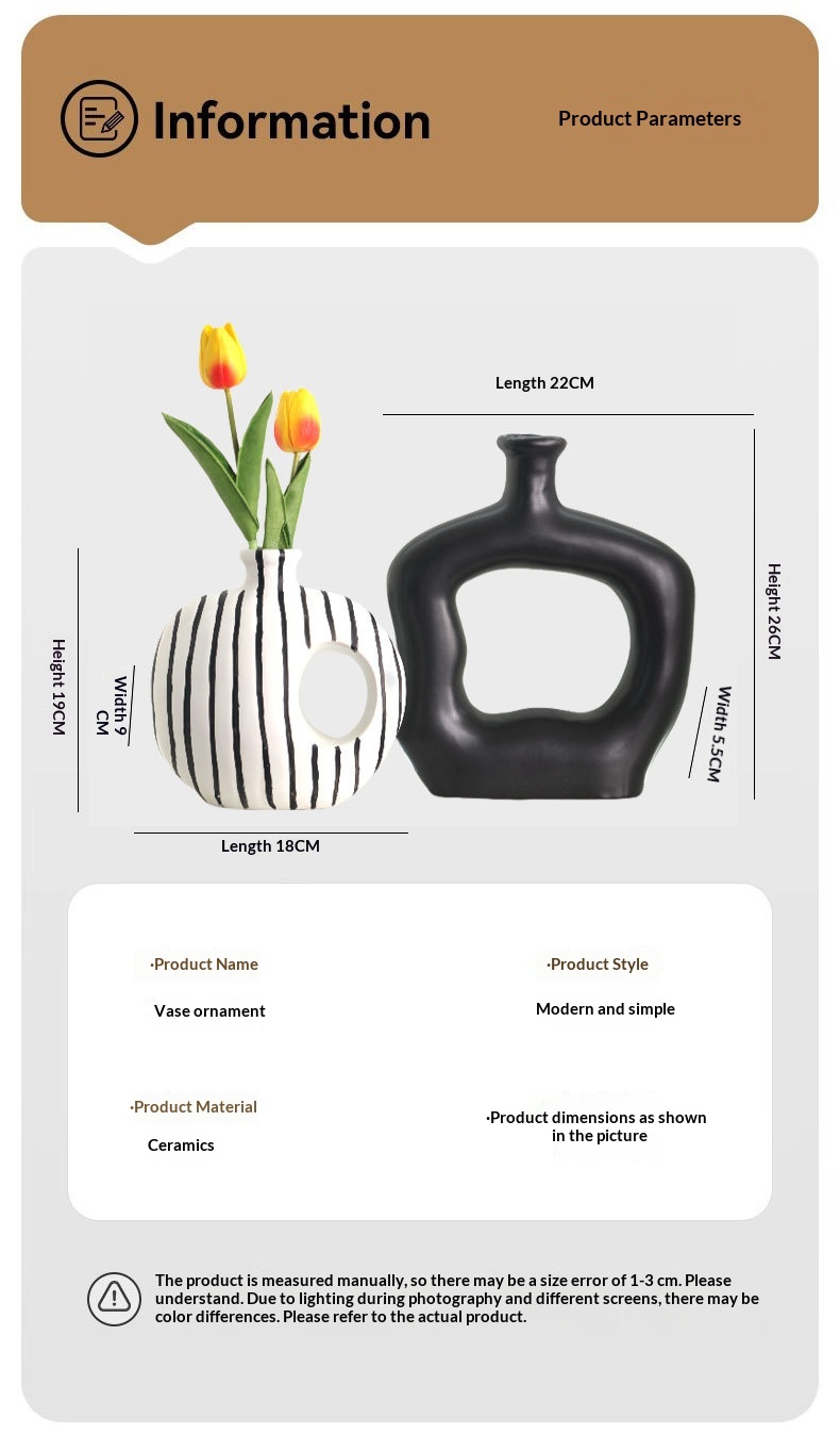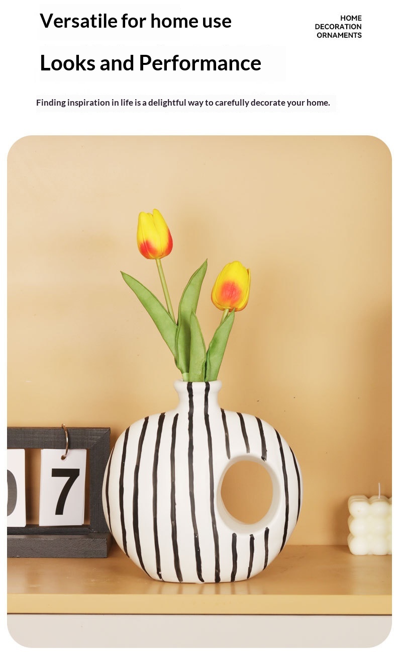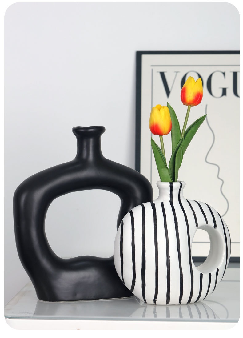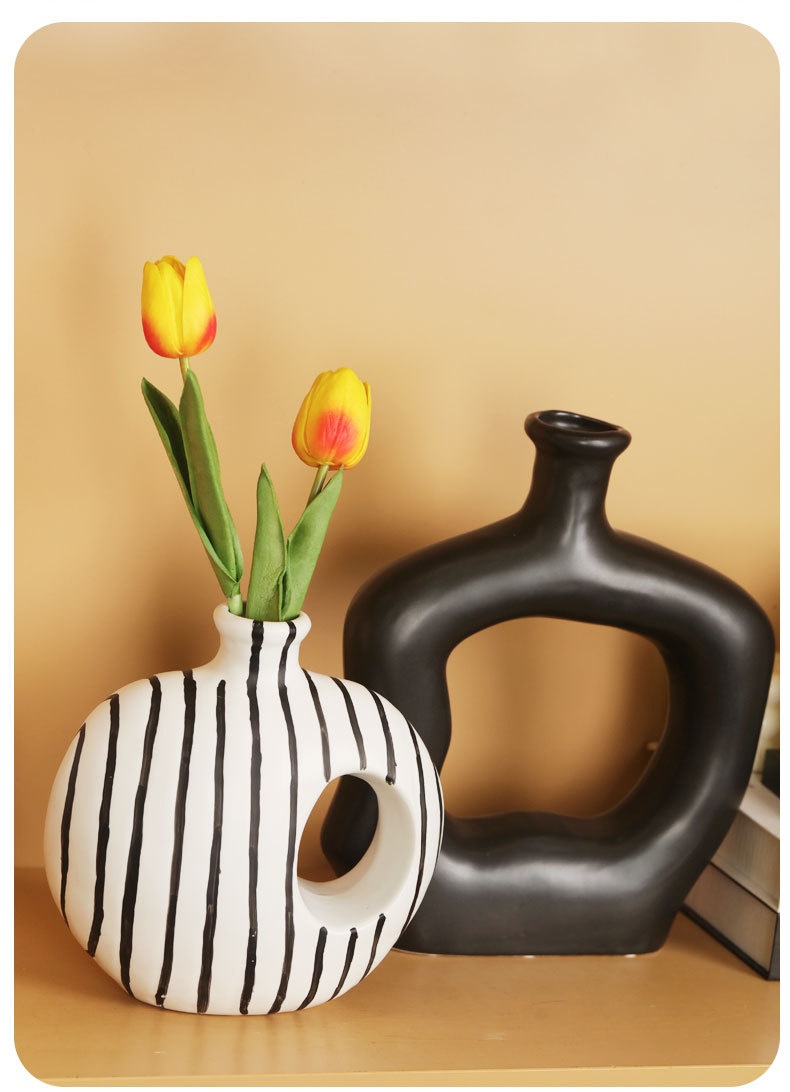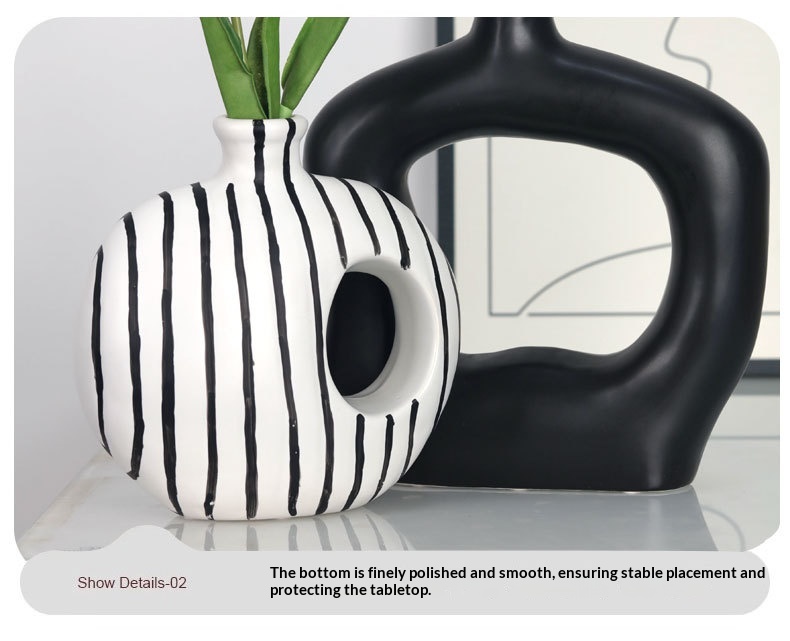 Modern Art Black-and-White Minimalist Striped Ceramic Vase