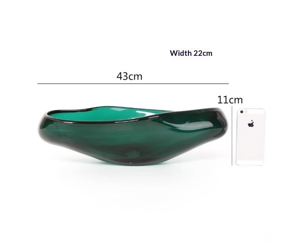 Product information:Style: Minimalist Colors: Large fruit bowl, small fruit bowl Material: Colored glass (liuli) Color options: Green liuli fruit plate (43 cm long), gray liuli fruit plate, green frui...