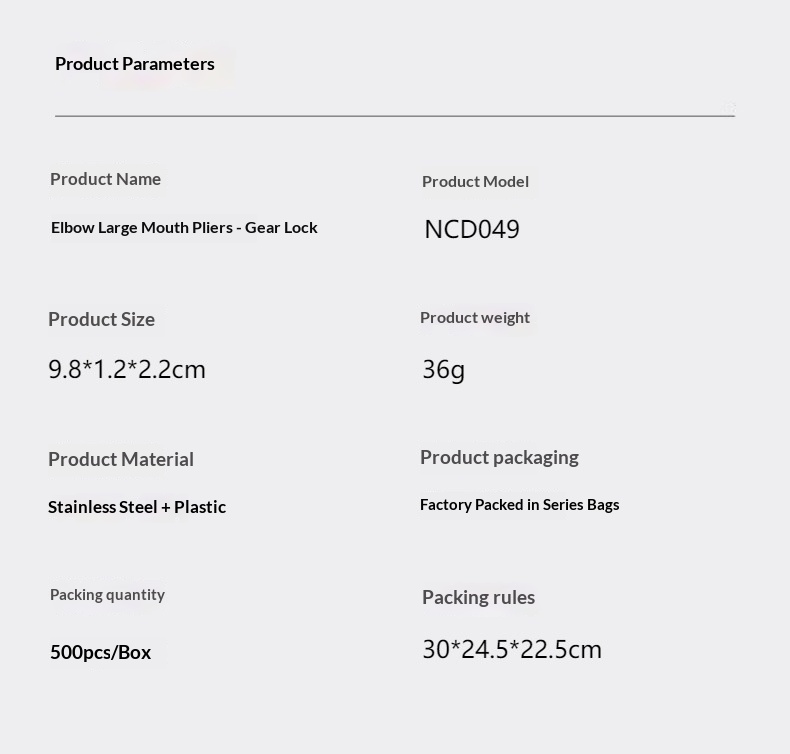 Product information:Applicable crowd: UniversalSpecification: EachMaterial: Plastic + Stainless steelColor classification: Bent-head gear-lock large-jaw pliers – black handleStyle: Portable, flat-jaw,...