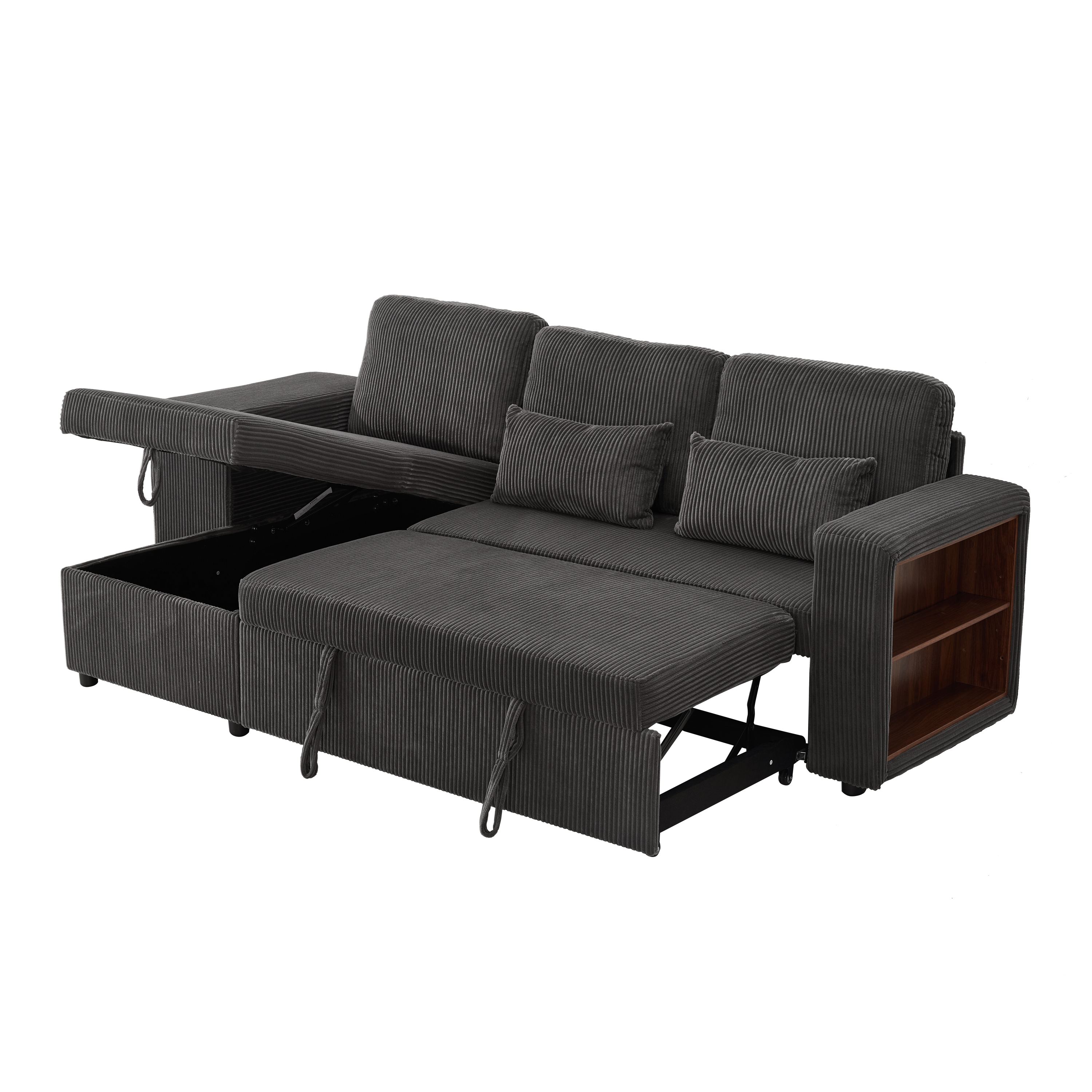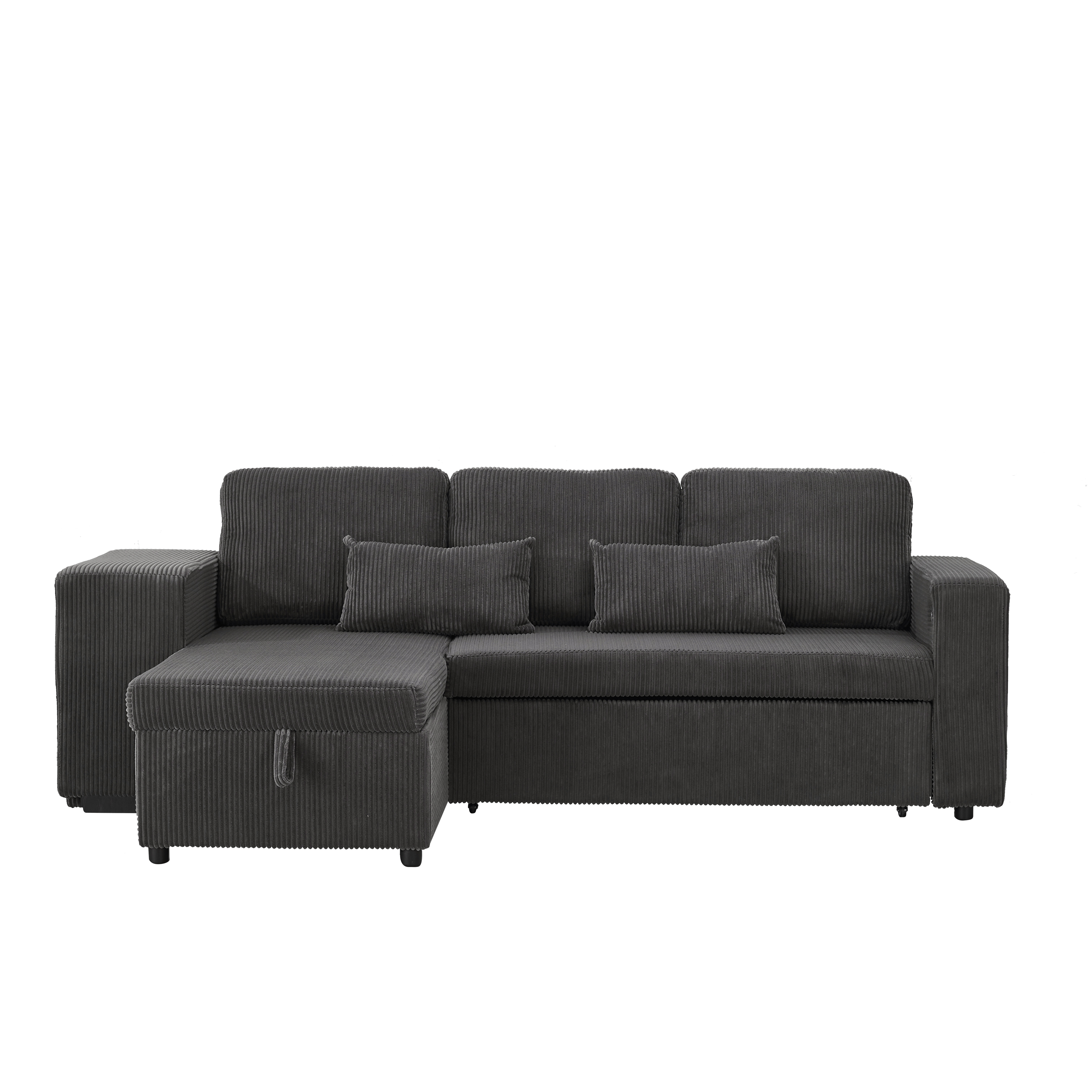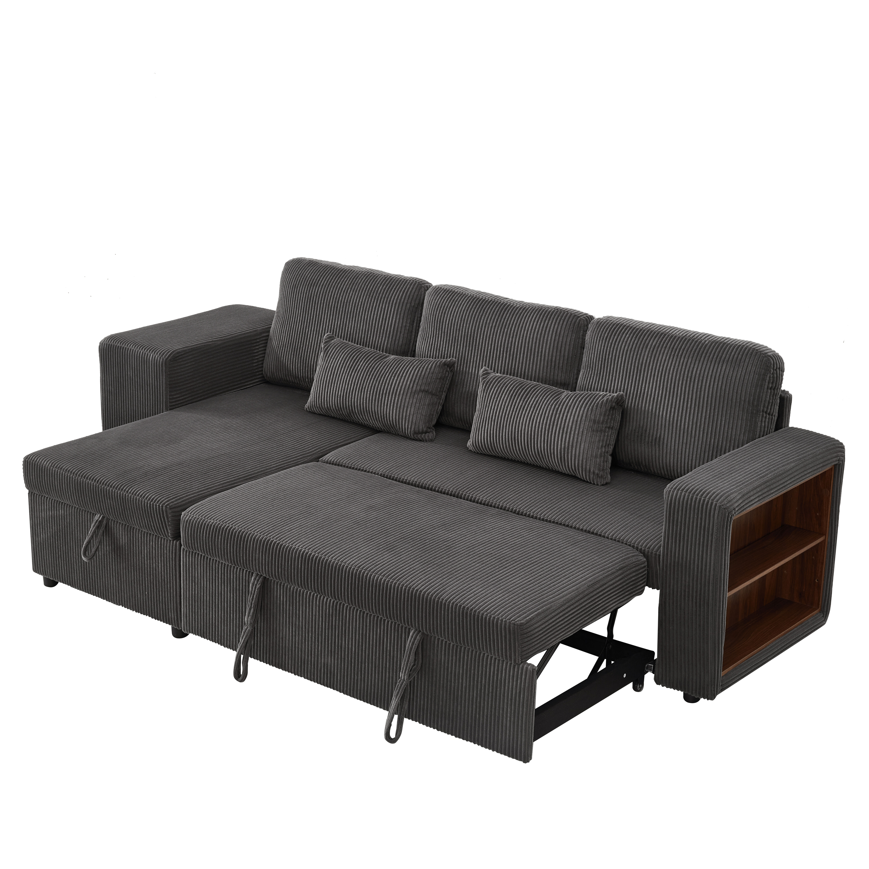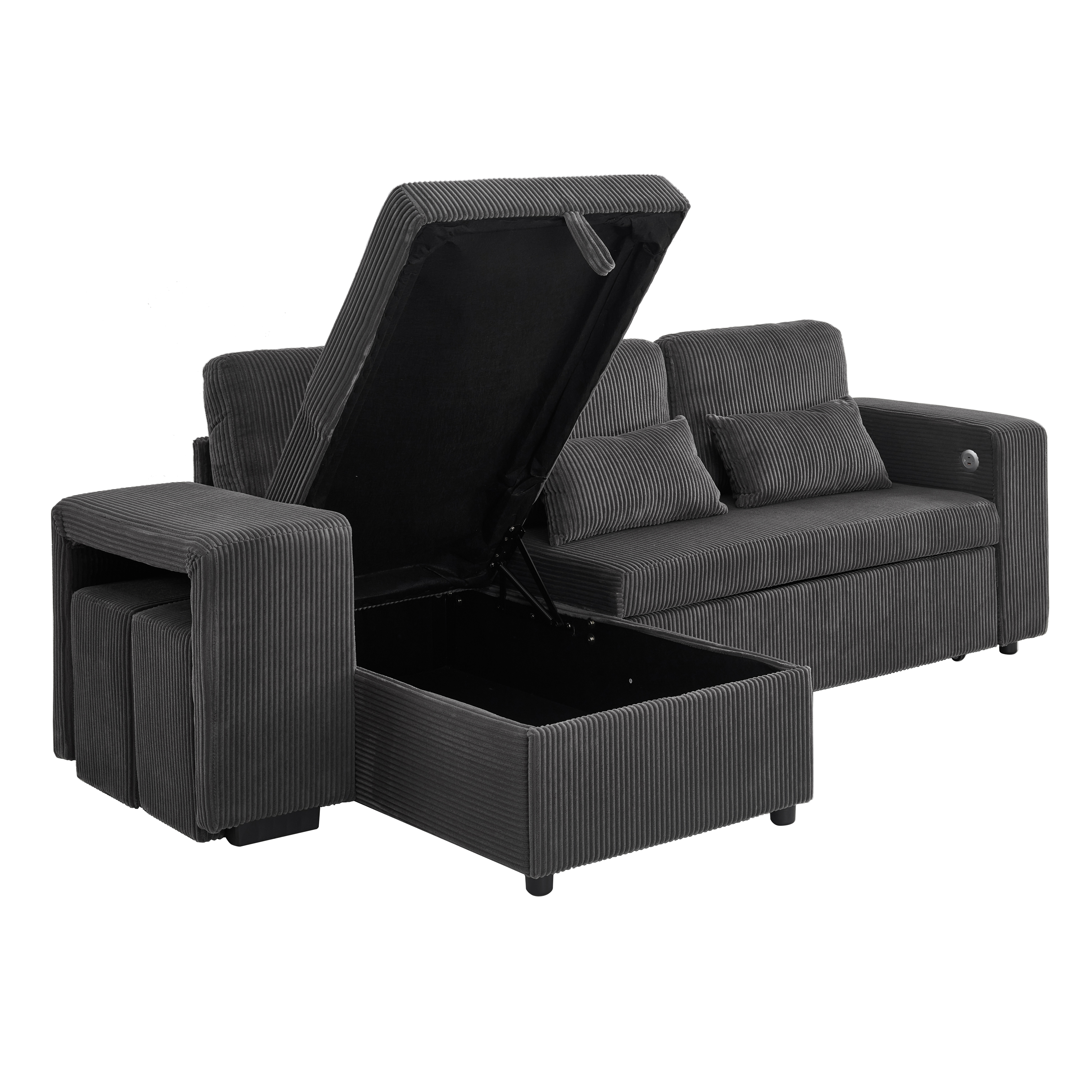 Product Name:Modern L-Shaped Convertible Sofa Bed, 3-in-1 Convertible Sofa Bed with Internal Storage Chaise, Nesting Footstools, Integrated Charging Station & Adjustable Armrest Side Storage, Corduroy Fabric, Grey