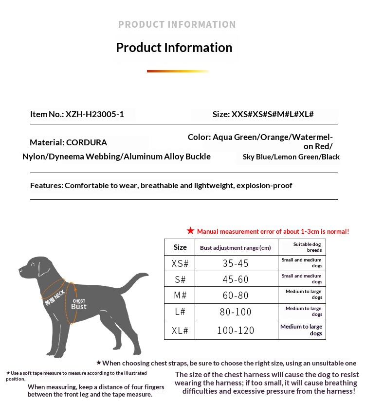 Product information:Color: Light green, sapphire blue, black, watermelon red, orange, yellowish green Size: XS, S, M, L, XL Gender: Unisex Material: Cordura fabric, aluminum alloy buckle, high-strengt...