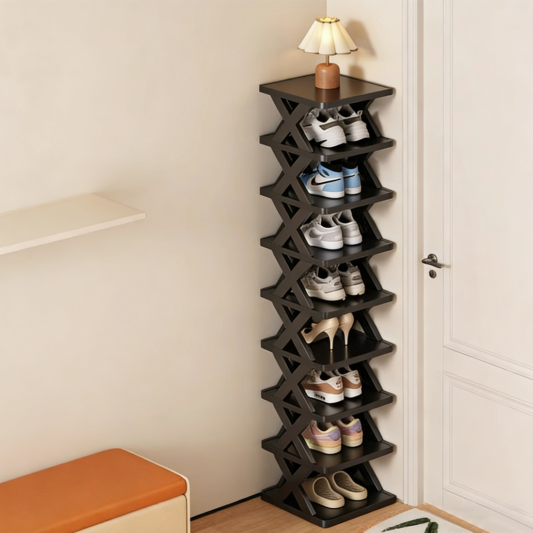 -Shoe storage: the shoe rack provides enough space for storing shoes of different sizes and styles, keeping them organized and easy to find,organizer rack,Shoe Rack Tall